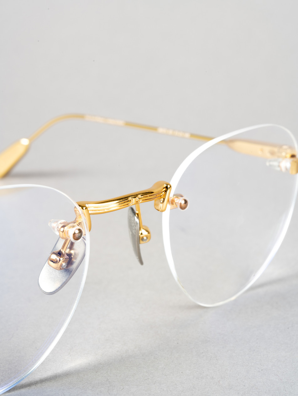 The IRO73 model from the Ytro collection is a pair of round-styled prescription glasses, designed in rimless metal for a modern, elegant look. Available in three colors: Brilliant Gold, Antique Matte Gold and Brilliant Silver, these glasses combine elegance and comfort.