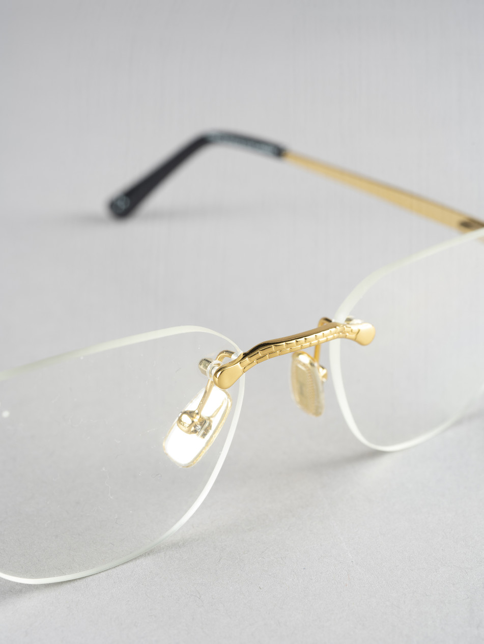 "Cosmos One" model from the Renaissance collection, is a lightweight and luxurious pair of eyeglasses. They are designed for those who appreciate elegance without ostentation, highlighting the clarity of vision and the delicacy of the design.
