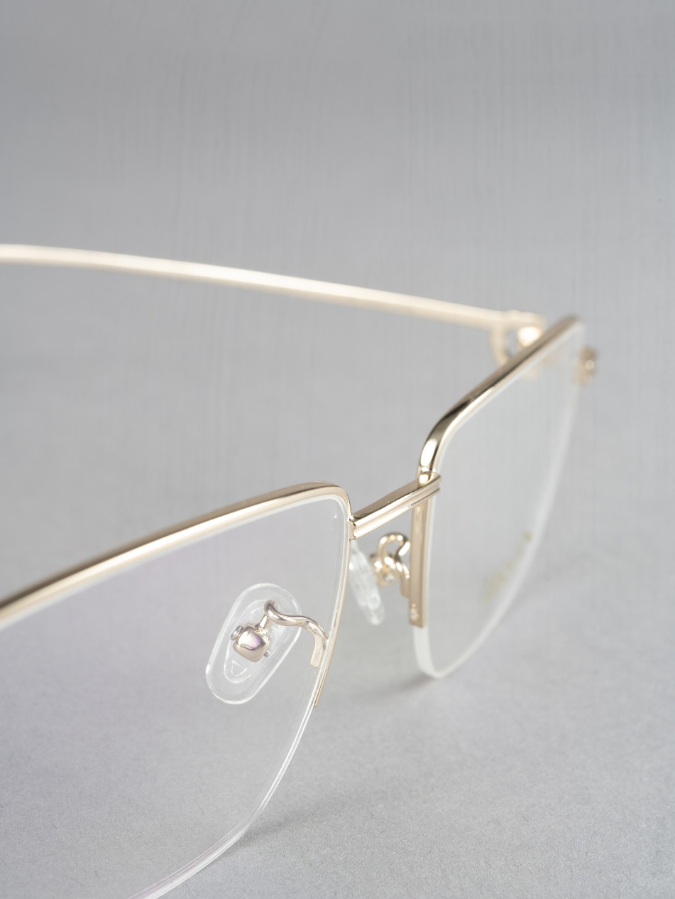 "Yous" model from the Renaissance collection, is a luxurious and discreet pair of eyeglasses. The fineness of the precious metal frame delicately emphasizes the eyes.