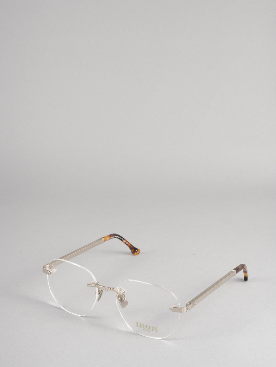 Our limited edition CUBOID, for a revisited retro style. Square optical frames rimless. A matching finishing ring and sleeve bring subtlety and finesse to the finishes of this model, available in 24-carat gold and silver plating. Gradient anti-reflective lenses, "metal effect" nose pads and elegant brushed metal Flex temples with the IRON Paris logo to never leave comfort aside.
