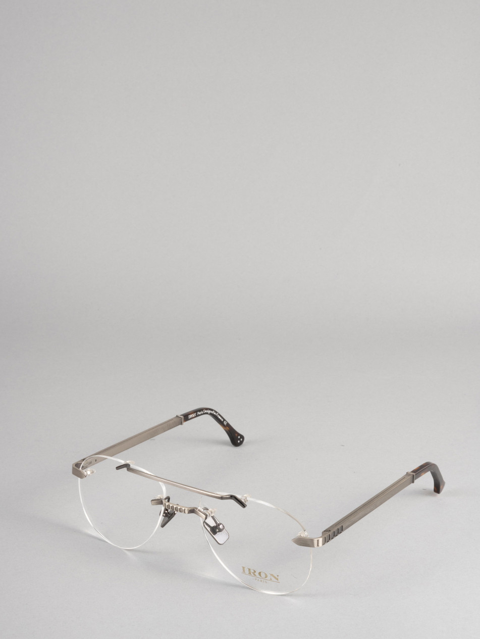 Our limited edition CUBOID, for a revisited retro style. Square optical frames rimless. A matching finishing ring and sleeve bring subtlety and finesse to the finishes of this model, available in 24-carat gold and silver plating. Gradient anti-reflective lenses, "metal effect" nose pads and elegant brushed metal Flex temples with the IRON Paris logo to never leave comfort aside.