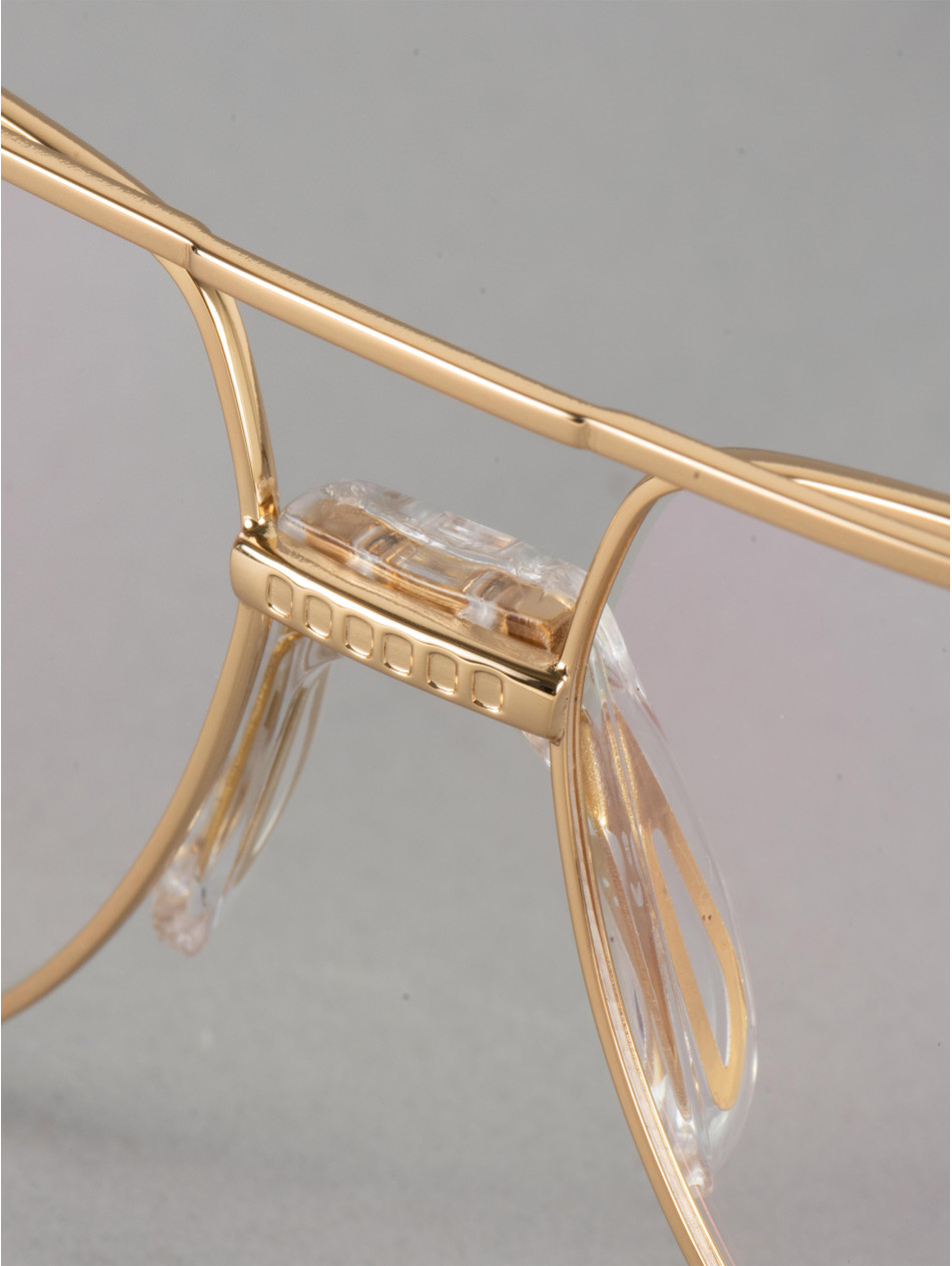Our limited edition CUBOID, for a revisited retro style. Square optical frames rimless. A matching finishing ring and sleeve bring subtlety and finesse to the finishes of this model, available in 24-carat gold and silver plating. Gradient anti-reflective lenses, "metal effect" nose pads and elegant brushed metal Flex temples with the IRON Paris logo to never leave comfort aside.
