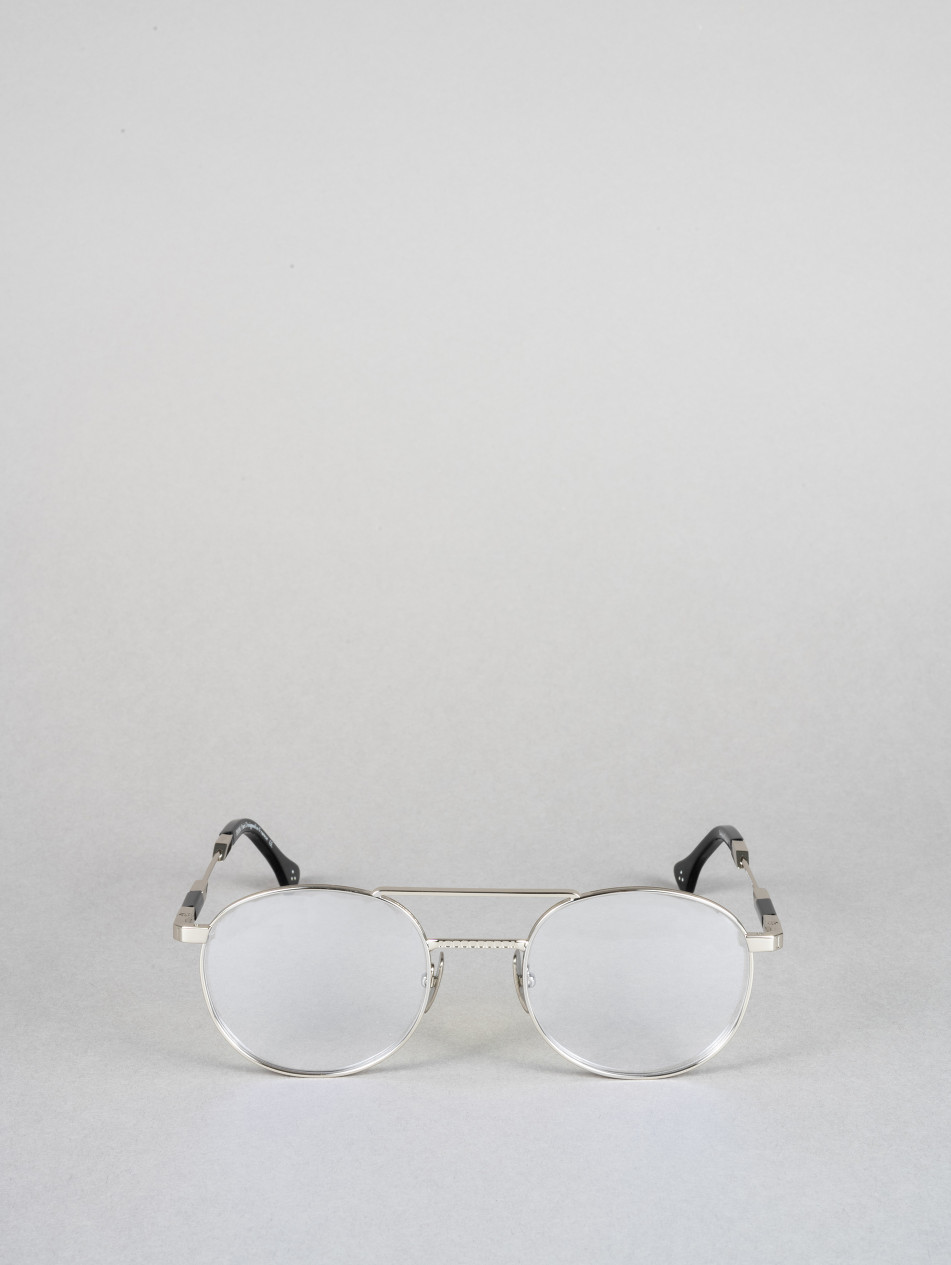 The IRO58 model embodies a distinctive contemporary style. With its round frame and striking double bridge, this pair is enhanced by a touch of sophistication with its black band on the temples. Available in silver, gold and black.