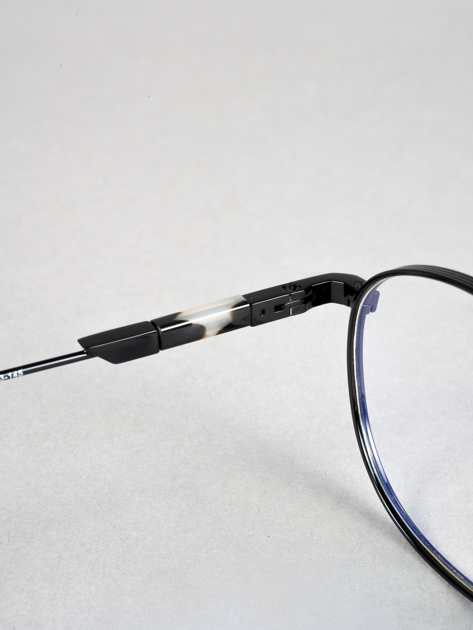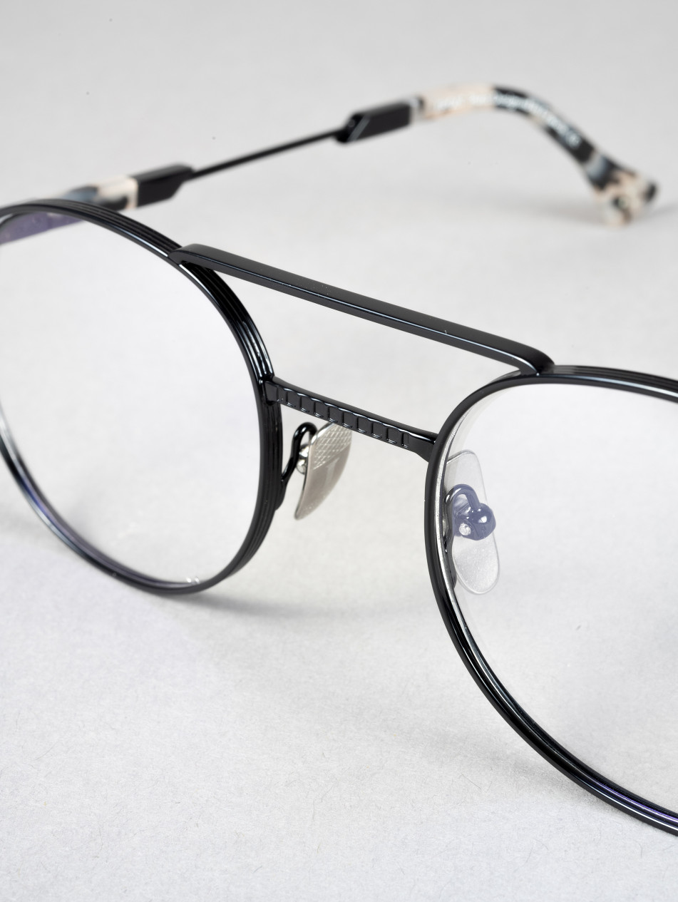 The IRO58 model embodies a distinctive contemporary style. With its round frame and striking double bridge, this pair is enhanced by a touch of sophistication with its black band on the temples. Available in silver, gold and black.