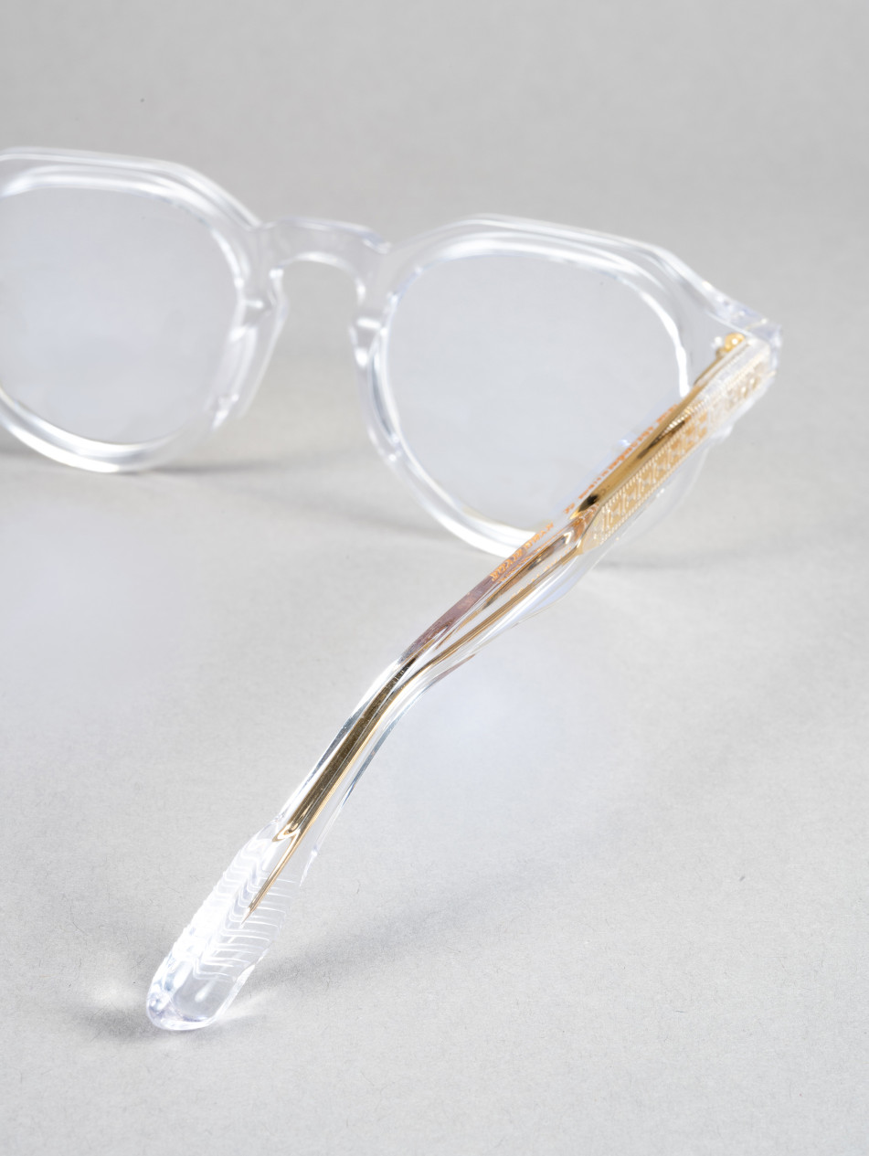The IRO66 model from the Ytro collection features a Pantos-style optical frame with acetate front and temples. Its assembly highlights the density and reflections of the material. Available in Havana and Gris Cristal Brillant, this pair of glasses embodies elegance and boldness.
