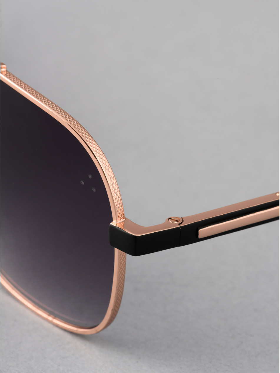 The essential. A delicately hallmarked metal sunglasses that adapts to all faces, female and male. A double bridge and temples with contrasting details, for a perfect match with the frame available in gold, pink gold and silver. A unique style complemented by optimal comfort thanks to its anti-reflective gradient lenses and its "metal effect" silicone pads with the IRON Paris logo.