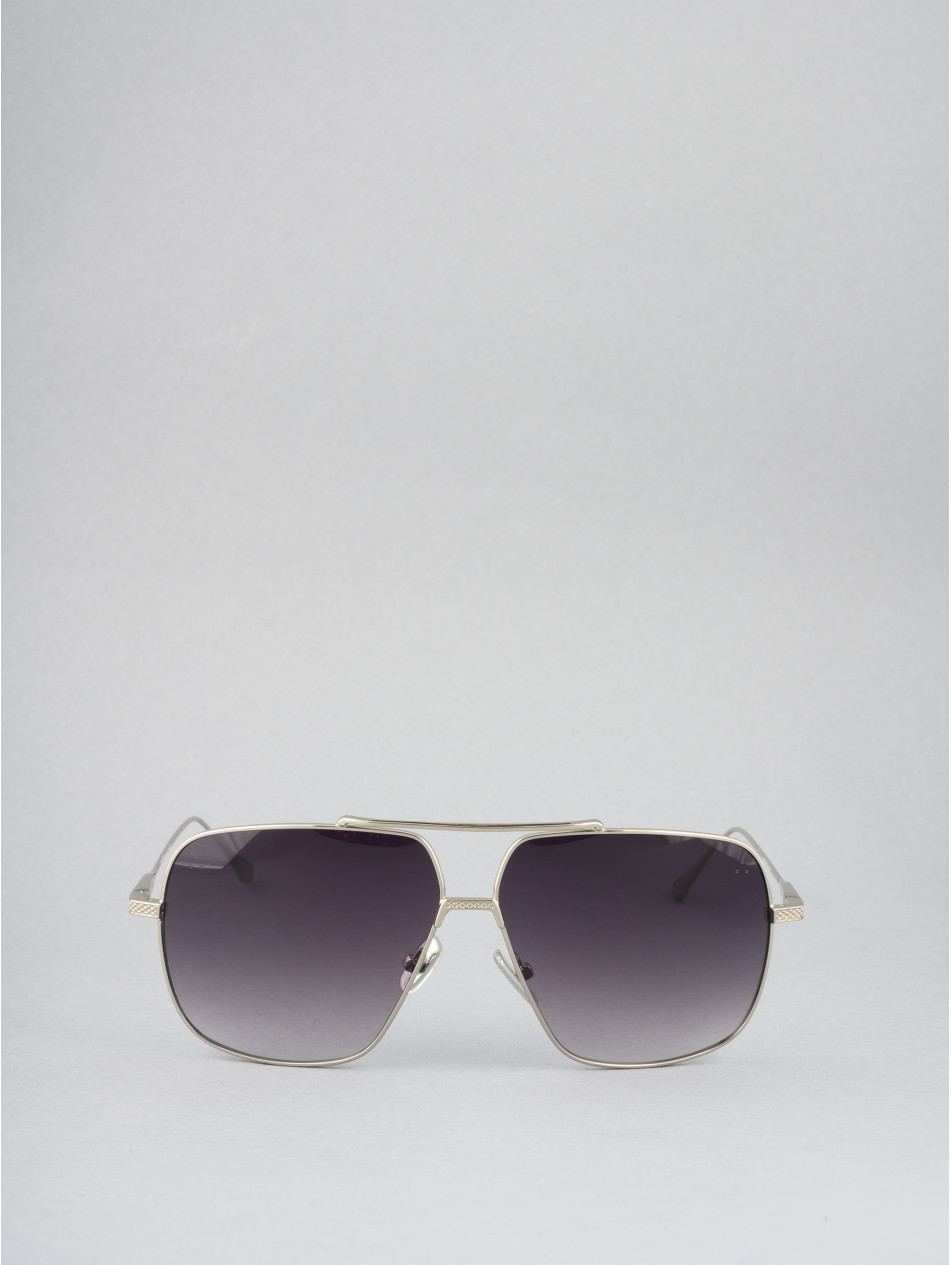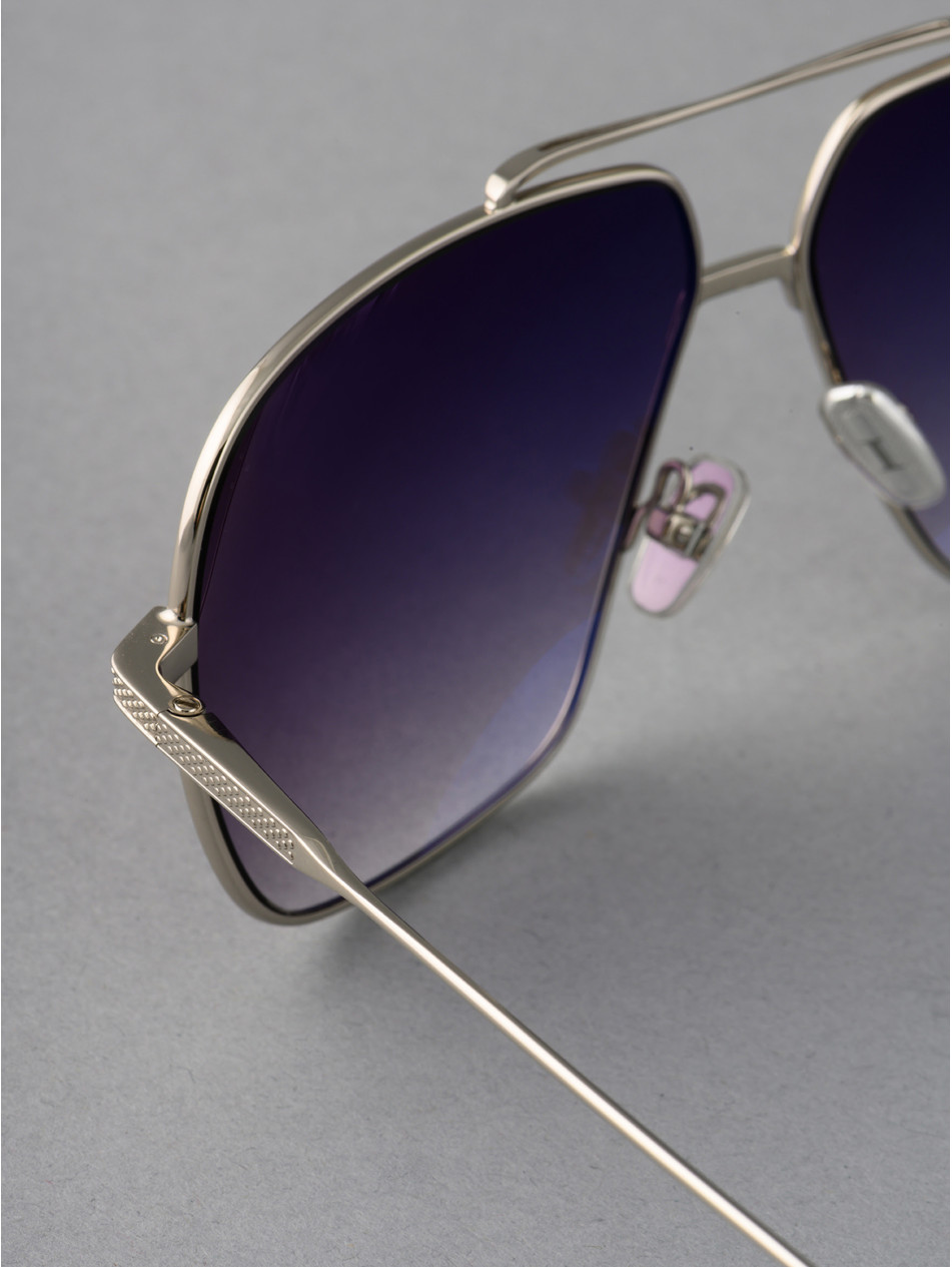 Our ultimate vintage model. A universal model that will illuminate all faces with its graduated anti-reflective panoramic lenses and its elegant double bridge. A metal sunglassesframe available in gold and silver, a bridge and finely punched temples bring an assertive character to the aviator style. "Metal effect" silicone pads with the IRON Paris logo for optimal comfort.