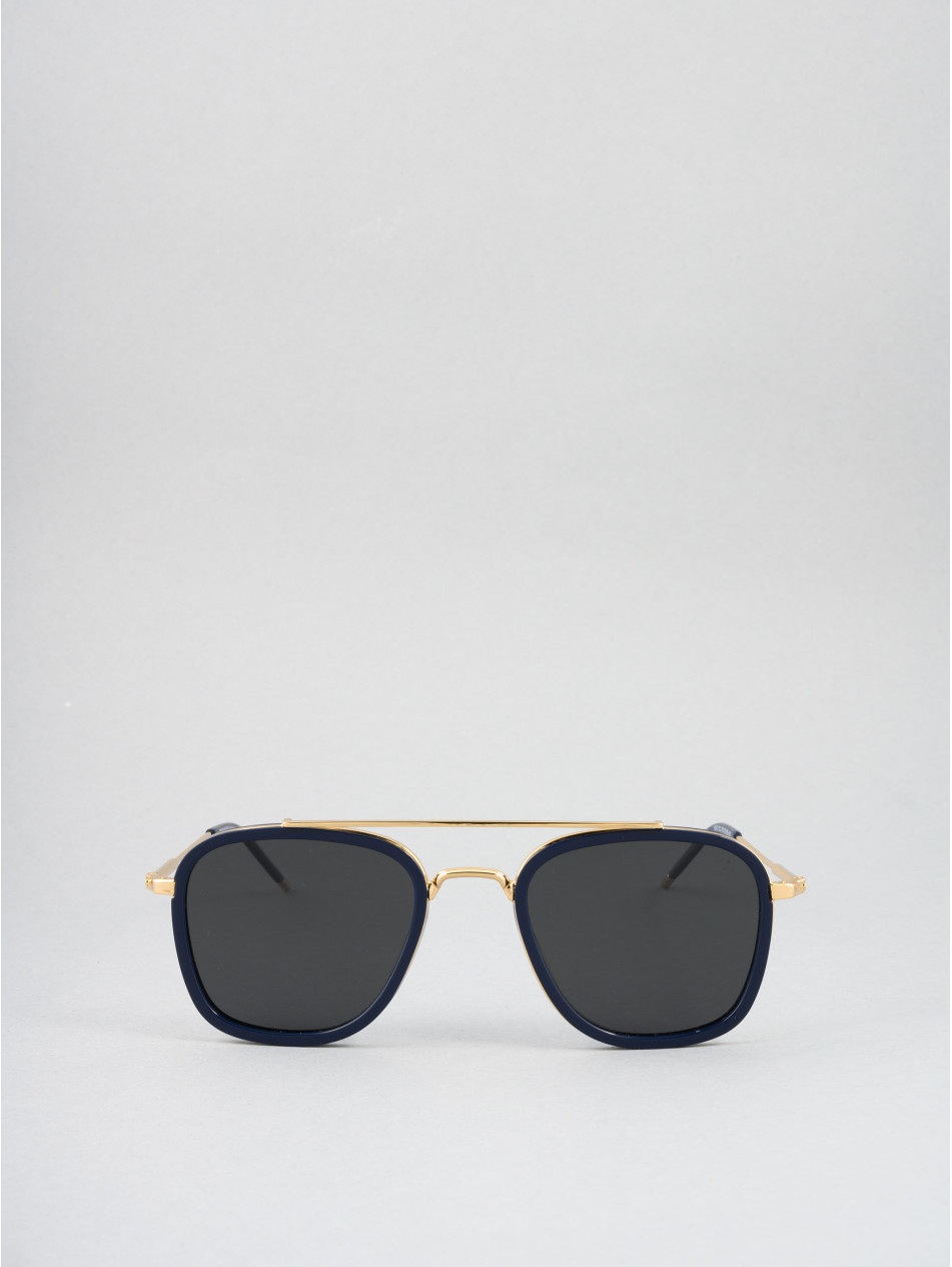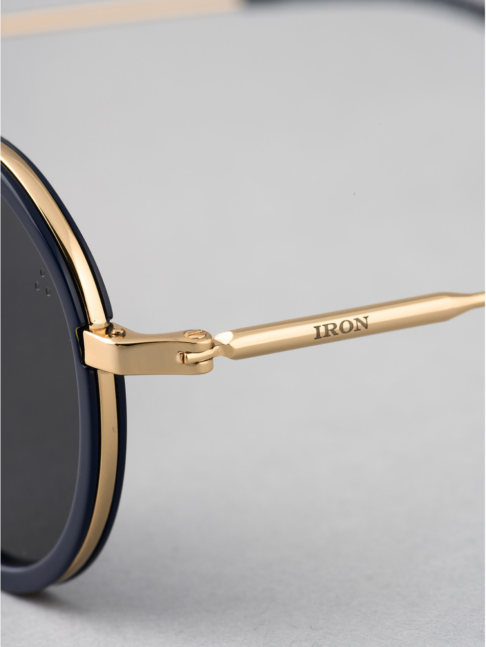 The exclusive. Our square style sunglassesare enhanced with a double bridge. An acetate strapping in different colours: black, matte black, blue or havana, reveals a gold or silver metal insert. Matching temple tips, anti-reflective lenses and meticulously engraved IRON Paris temples bring lightness and style to this universal frame.