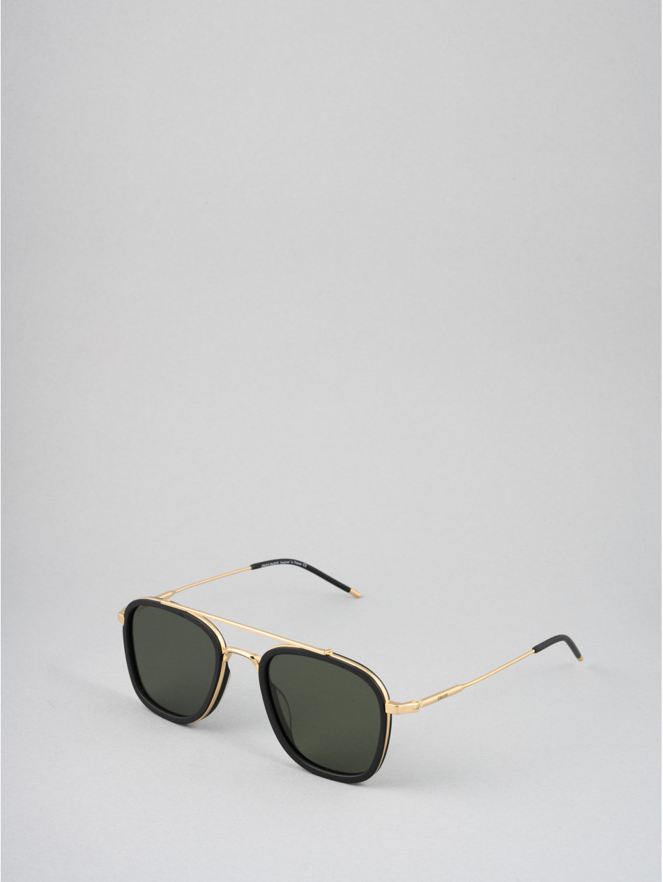 The exclusive. Our square style sunglassesare enhanced with a double bridge. An acetate strapping in different colours: black, matte black, blue or havana, reveals a gold or silver metal insert. Matching temple tips, anti-reflective lenses and meticulously engraved IRON Paris temples bring lightness and style to this universal frame.
