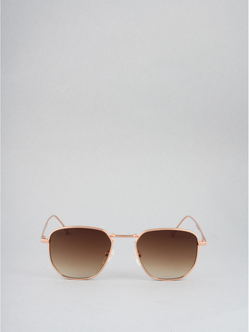 Our timeless basic, sunglasses with a square shape and a vintage spirit. A meticulously hallmarked sunglasses frame on the contours of the lenses, inserts of I engraved on the side of the temples, for a sober and always refined style. Gradient lenses, discreet silicone pads, light temples, this model available in gold, pink gold and silver will awaken a refined finesse that will stick to your skin.
