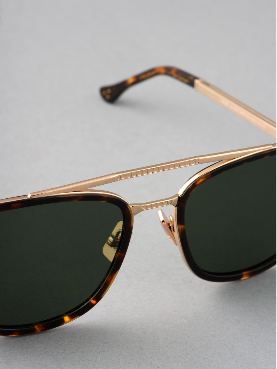 Our limited edition BRIDGE, the iconic. Strapping in black, matte black or dark tortoiseshell acetate for a vintage and authentic inspiration. A meticulously hallmarked double bridge revealing the metal insert in yellow gold plated, 24-carat pink gold or silver, matching finish ring and sleeve, the subtlety of the finishes of this model bring character and style to this timeless piece. Gradient anti-reflective lenses, "metal effect" nose pads and elegantly brushed metal Flex temples with the IRON Paris logo for optimum comfort.