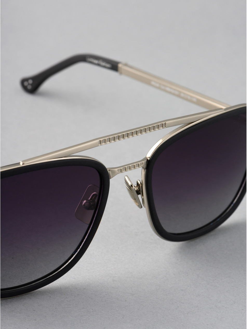 Our limited edition BRIDGE, the iconic. Strapping in black, matte black or dark tortoiseshell acetate for a vintage and authentic inspiration. A meticulously hallmarked double bridge revealing the metal insert in yellow gold plated, 24-carat pink gold or silver, matching finish ring and sleeve, the subtlety of the finishes of this model bring character and style to this timeless piece. Gradient anti-reflective lenses, "metal effect" nose pads and elegantly brushed metal Flex temples with the IRON Paris logo for optimum comfort.
