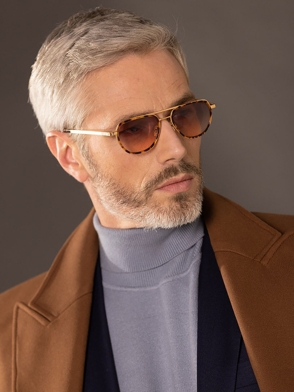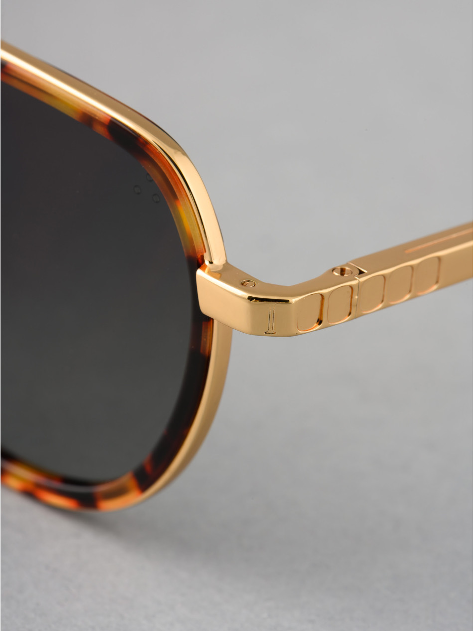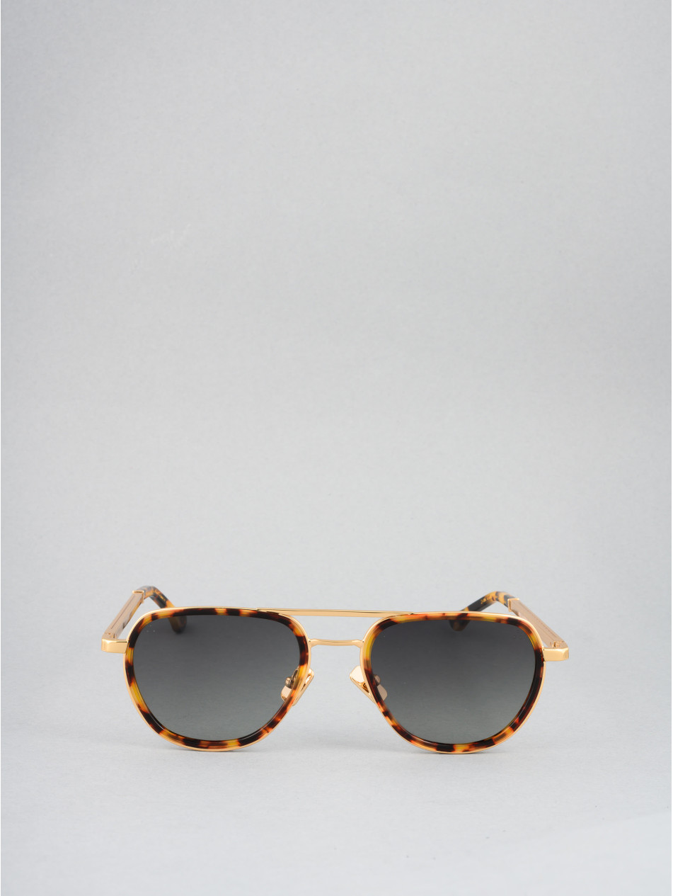 Our RUBBER sunglasses in limited edition, the must-have. Acetate strapping in matte black or havana for a resolutely trendy pilot style. Discreet double bridge revealing the 24k gold-plated or silver-plated metal insert, matching finish ring and sleeve, the subtlety of the finishes of this model bring character and style to this timeless piece. Gradient anti-reflective lenses, "metal effect" nose pads and elegantly brushed metal Flex temples with the IRON Paris logo to never leave comfort aside.