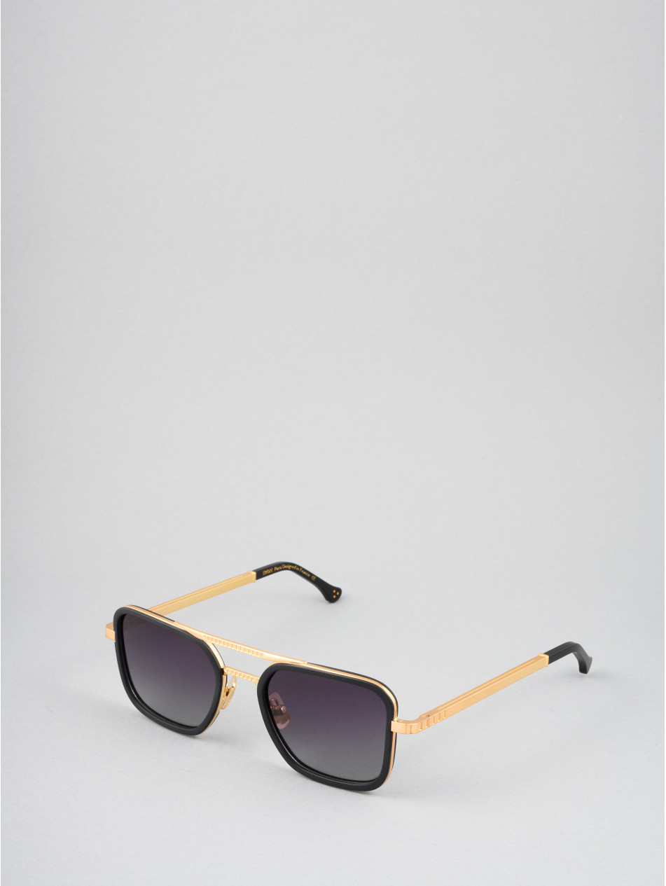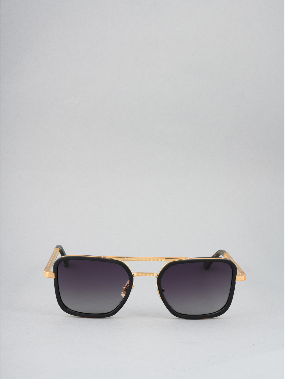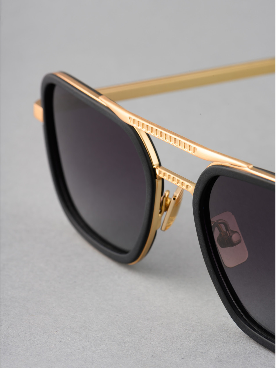 Our limited edition CUBOID, for a revisited retro style. Square sunglasses with black or havana acetate strapping, topped with a finely punched double bridge revealing a discreet metal insert for an incomparable profile. A matching finishing ring and sleeve bring subtlety and finesse to the finishes of this model, available in 24-carat gold and silver plating. Gradient anti-reflective lenses, "metal effect" nose pads and elegant brushed metal Flex temples with the IRON Paris logo to never leave comfort aside.