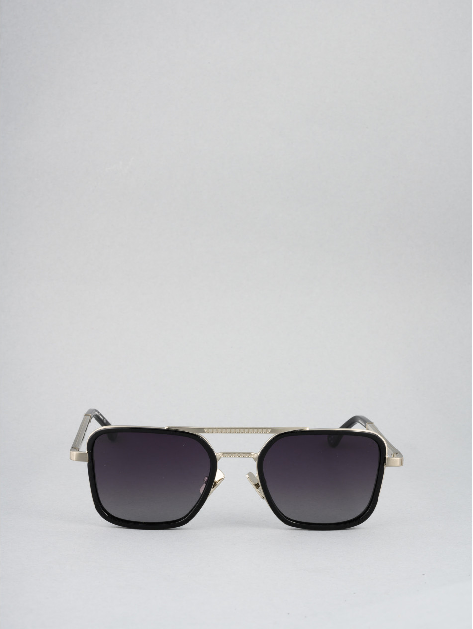 Our limited edition CUBOID, for a revisited retro style. Square sunglasses with black or havana acetate strapping, topped with a finely punched double bridge revealing a discreet metal insert for an incomparable profile. A matching finishing ring and sleeve bring subtlety and finesse to the finishes of this model, available in 24-carat gold and silver plating. Gradient anti-reflective lenses, "metal effect" nose pads and elegant brushed metal Flex temples with the IRON Paris logo to never leave comfort aside.