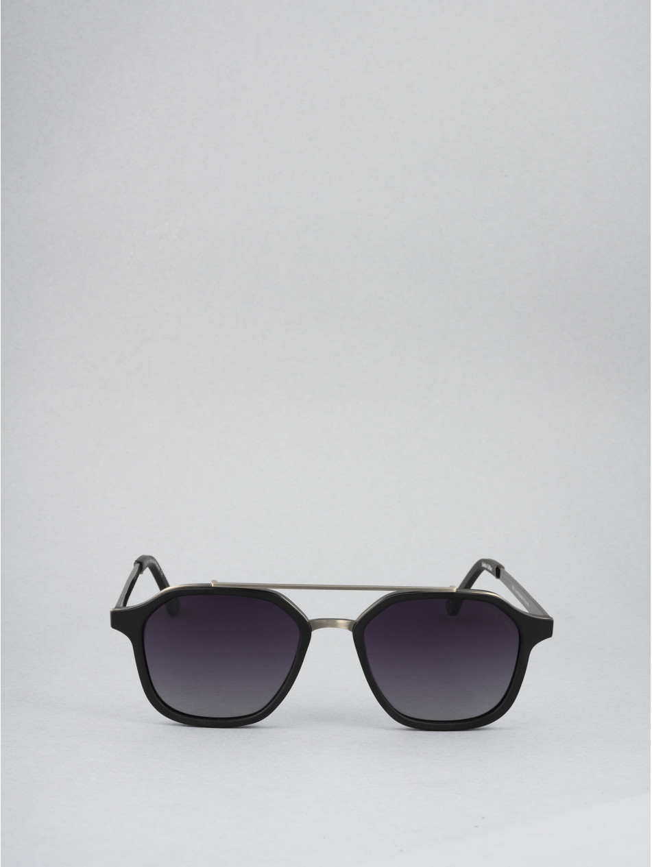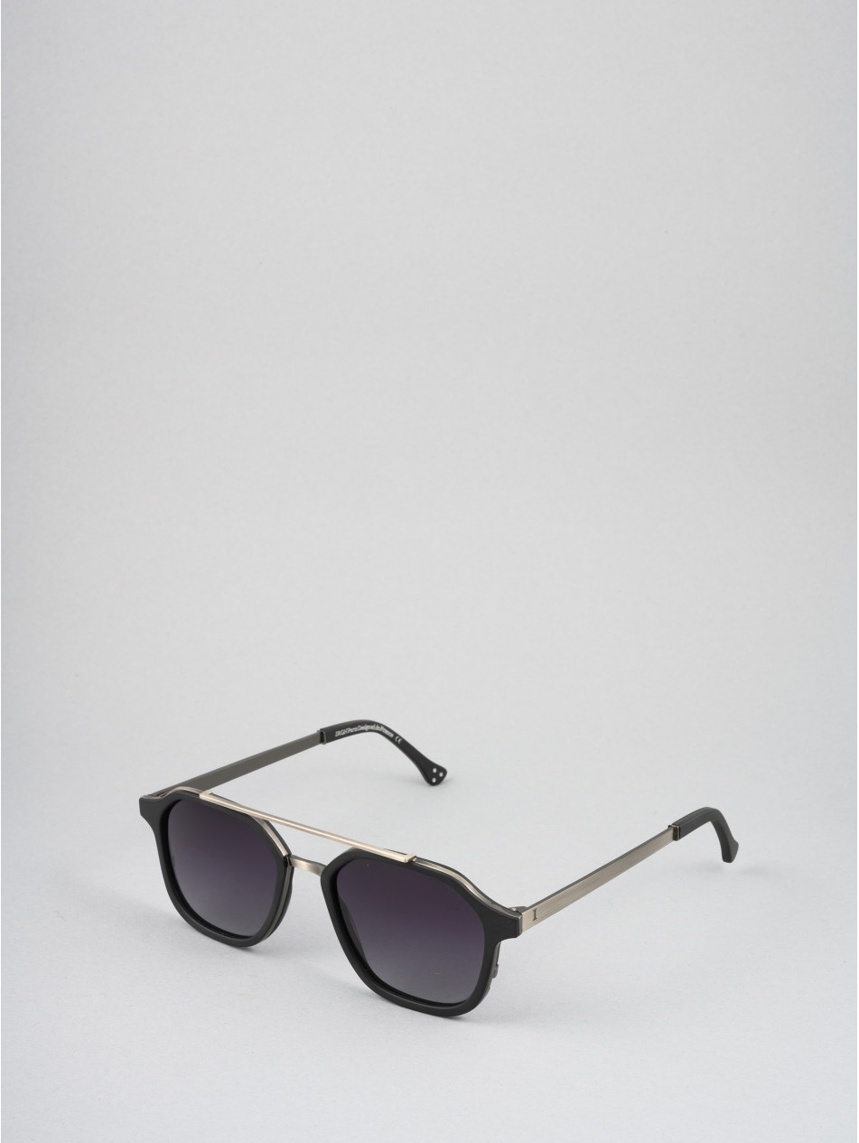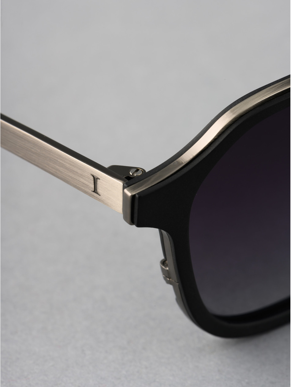 Our limited edition SQUARE model, the chic ally in all circumstances. A revisited pilot shape with double bridge and black or havana acetate strapping, revealing a metal insert for an incomparable profile. A finishing ring and a matching sleeve bring subtlety and finesse to the details of this sunglasses model available in 24-carat gold-plated and silver-plated..