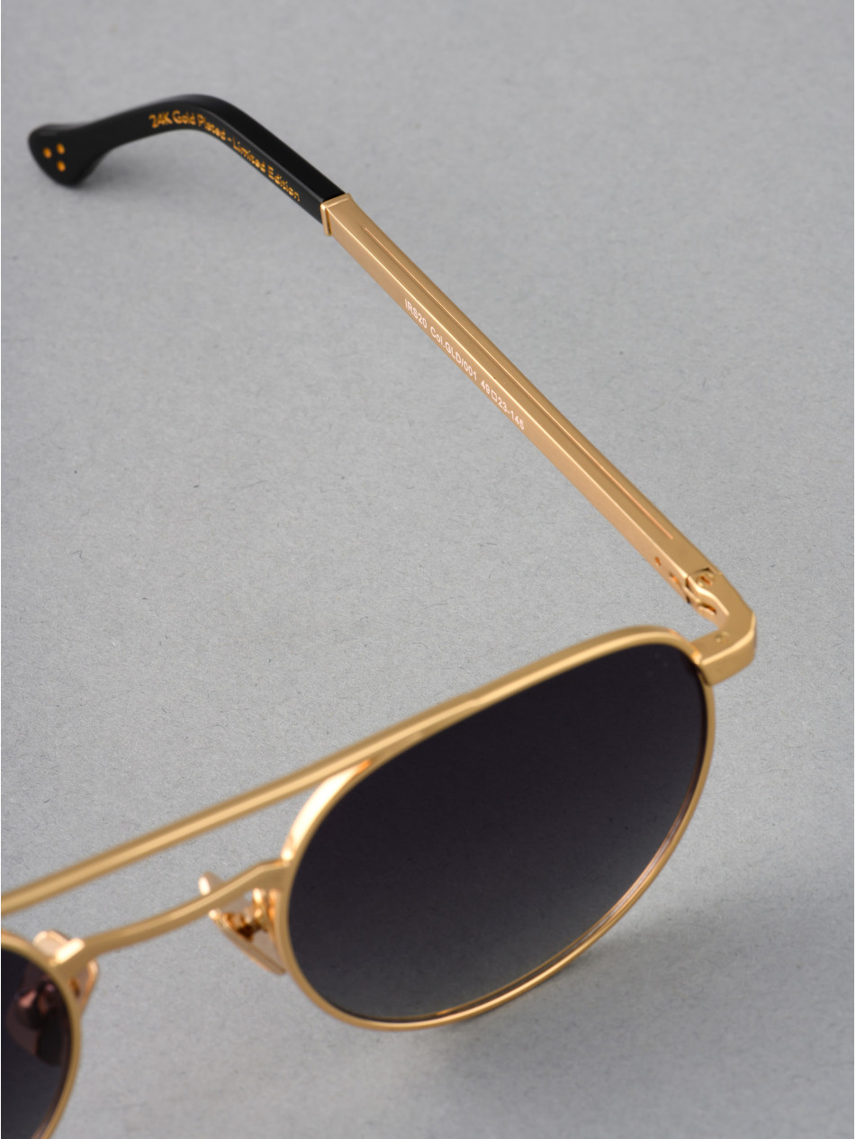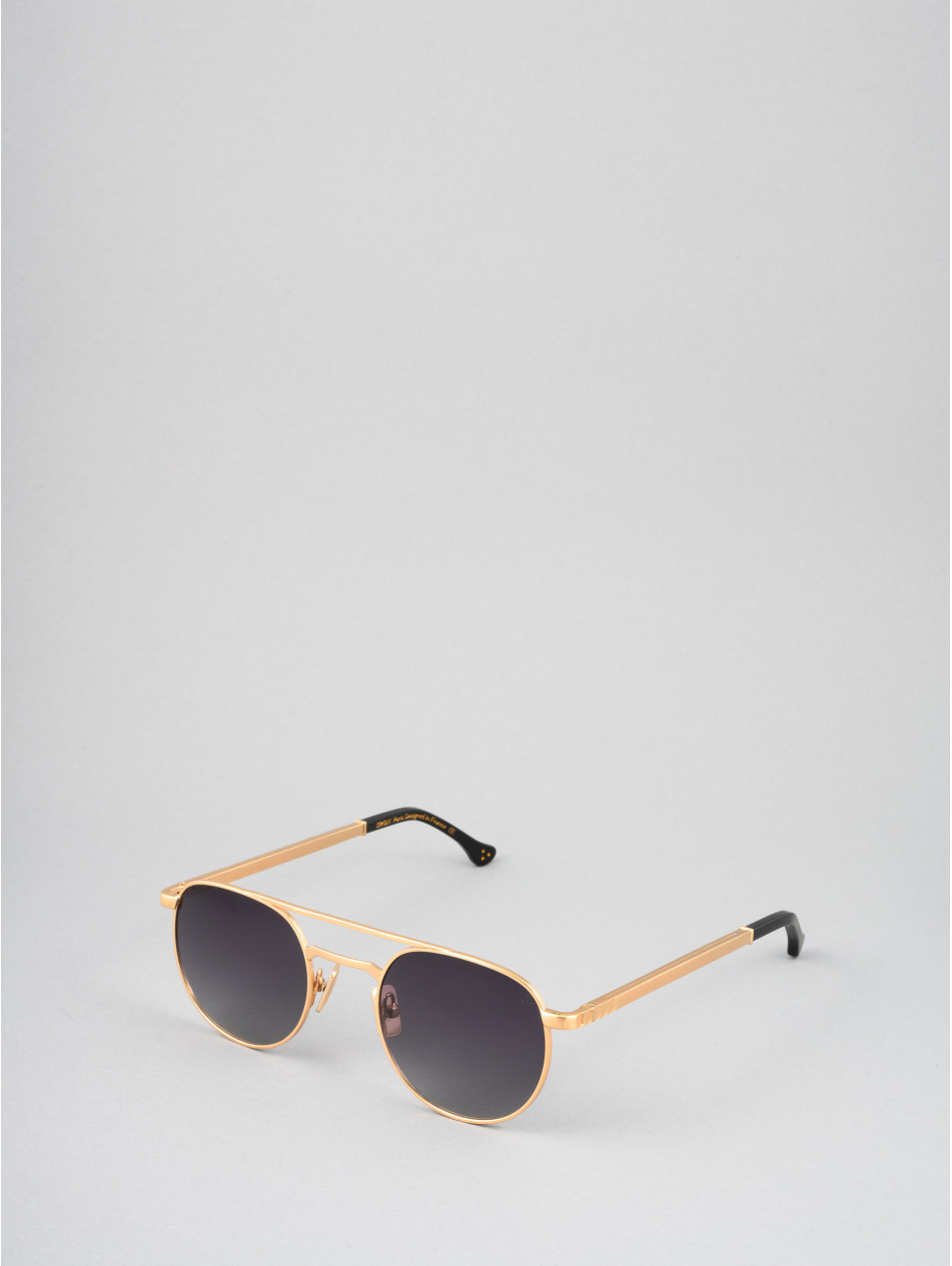 This sunglassesframe revisits the 80s in a gold or silver version. A round shape and a sleek double bridge for an irresistibly trendy look, it's the essential accessory for all your outfits. Gradient anti-reflective lenses, silicone "metal effect" pads with the IRON Paris logo and Flex temples to combine style and comfort.