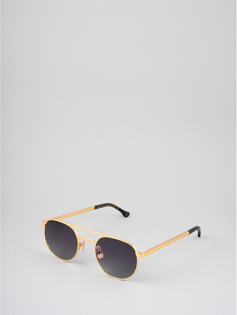 This sunglassesframe revisits the 80s in a gold or silver version. A round shape and a sleek double bridge for an irresistibly trendy look, it's the essential accessory for all your outfits. Gradient anti-reflective lenses, silicone "metal effect" pads with the IRON Paris logo and Flex temples to combine style and comfort.