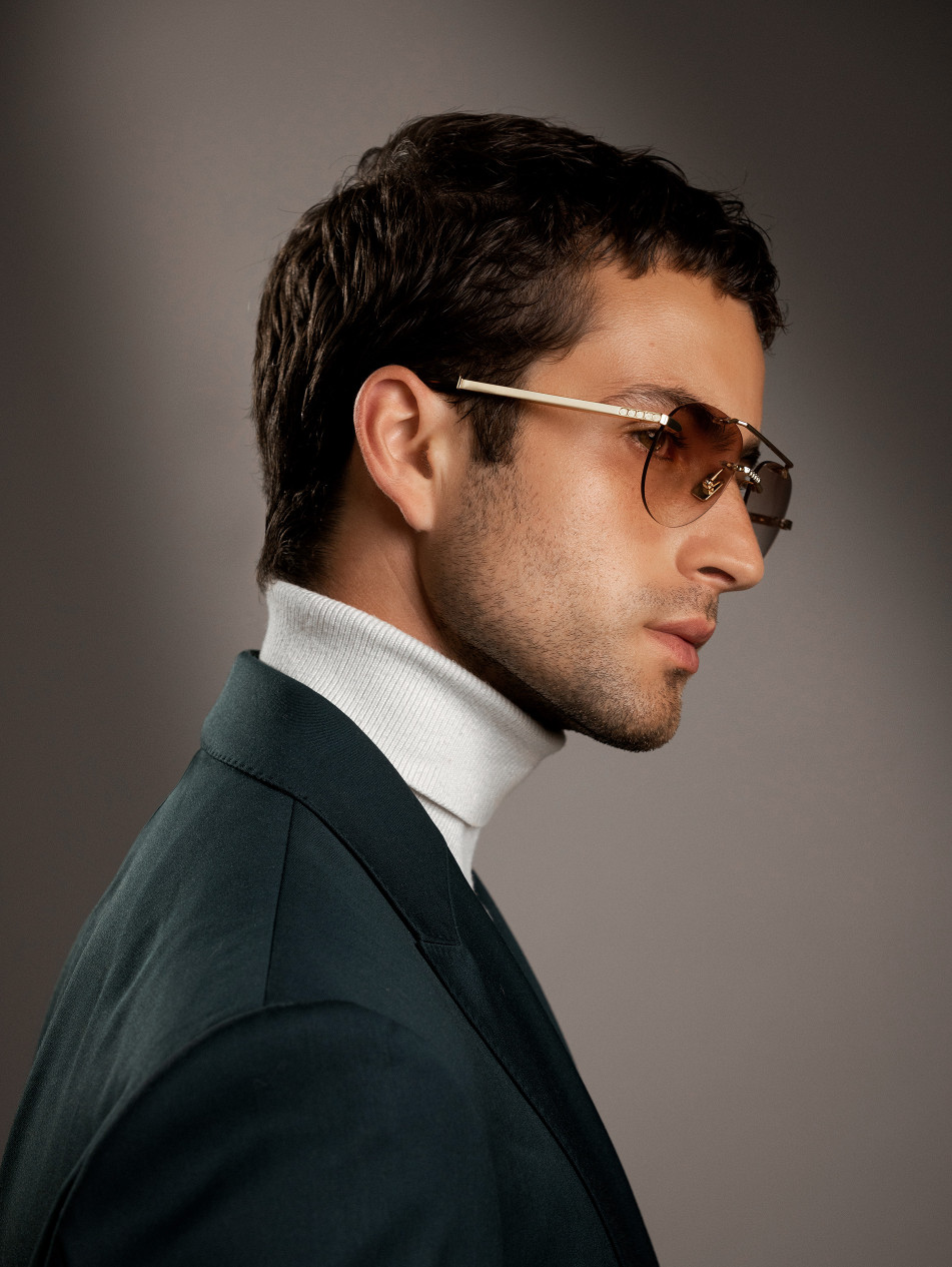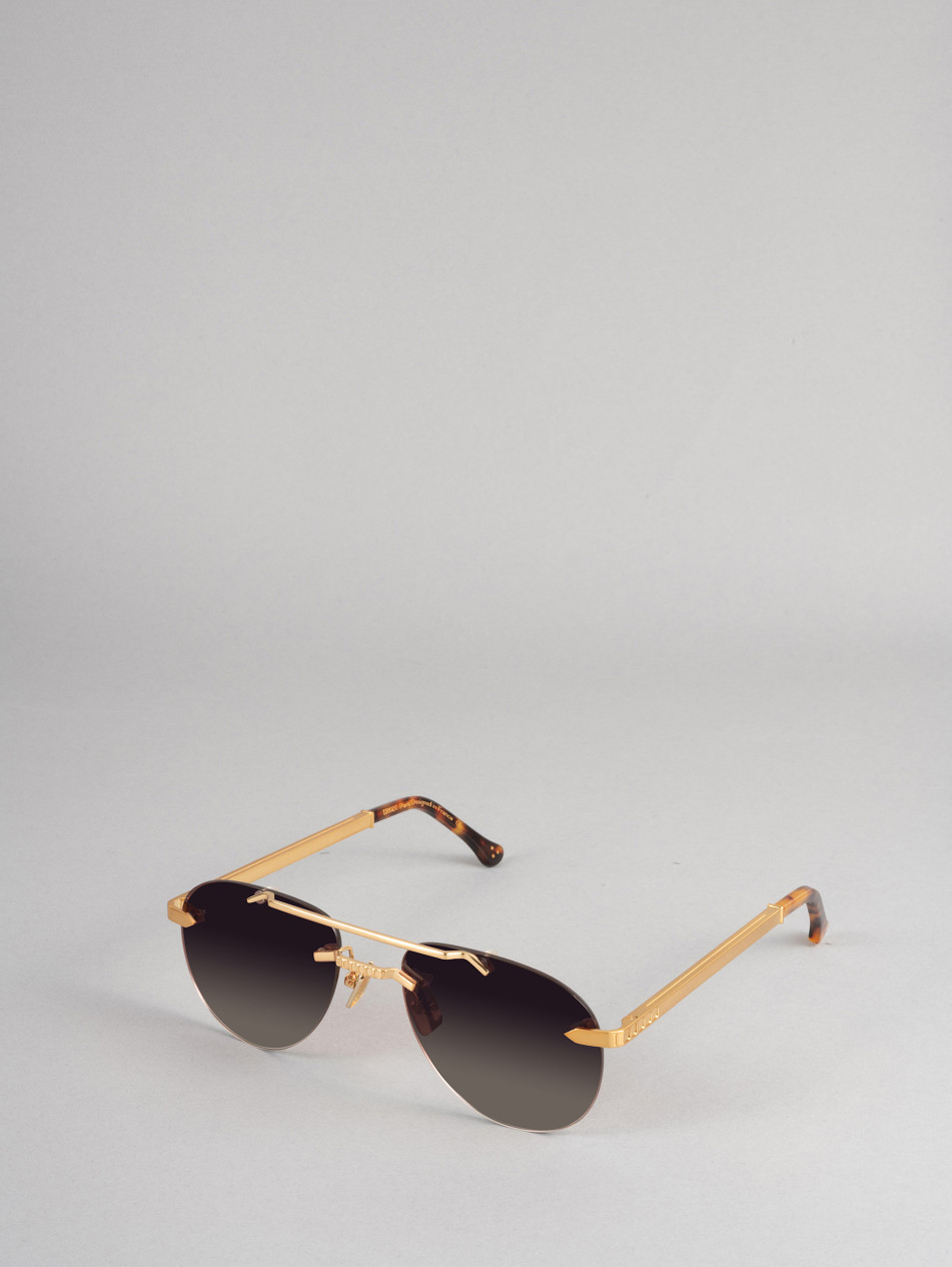 Our limited edition CUBOID, for a revisited retro style. Square sunglasses rimless. A matching finishing ring and sleeve bring subtlety and finesse to the finishes of this model, available in 24-carat gold and silver plating. Gradient anti-reflective lenses, "metal effect" nose pads and elegant brushed metal Flex temples with the IRON Paris logo to never leave comfort aside.