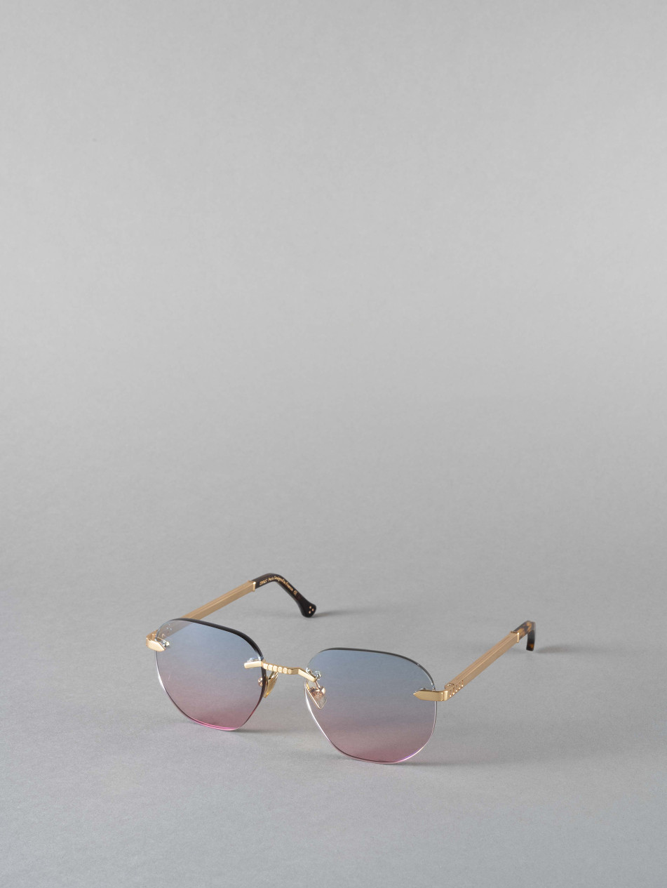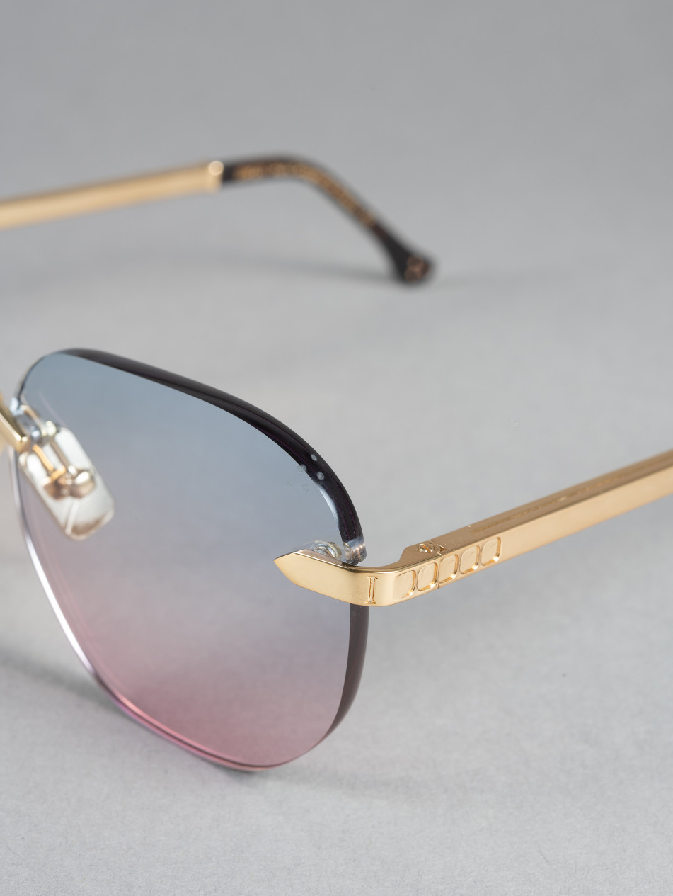 The "JOYCE" model will appeal to women and men alike. A frame both charismatic and refined. Our pierced model is available in optical and sunglasses. With its famous square temples featuring the brand's logo. This 24-carat gold-plated frame offers a choice of lens colors. A finishing ring and matching sleeve bring subtlety and finesse to the finishes of this model, available in a range of colors. Metal-effect nose pads and brushed metal Flex temples, elegantly stamped with the IRON PARIS logo, ensure that comfort is never forgotten.
