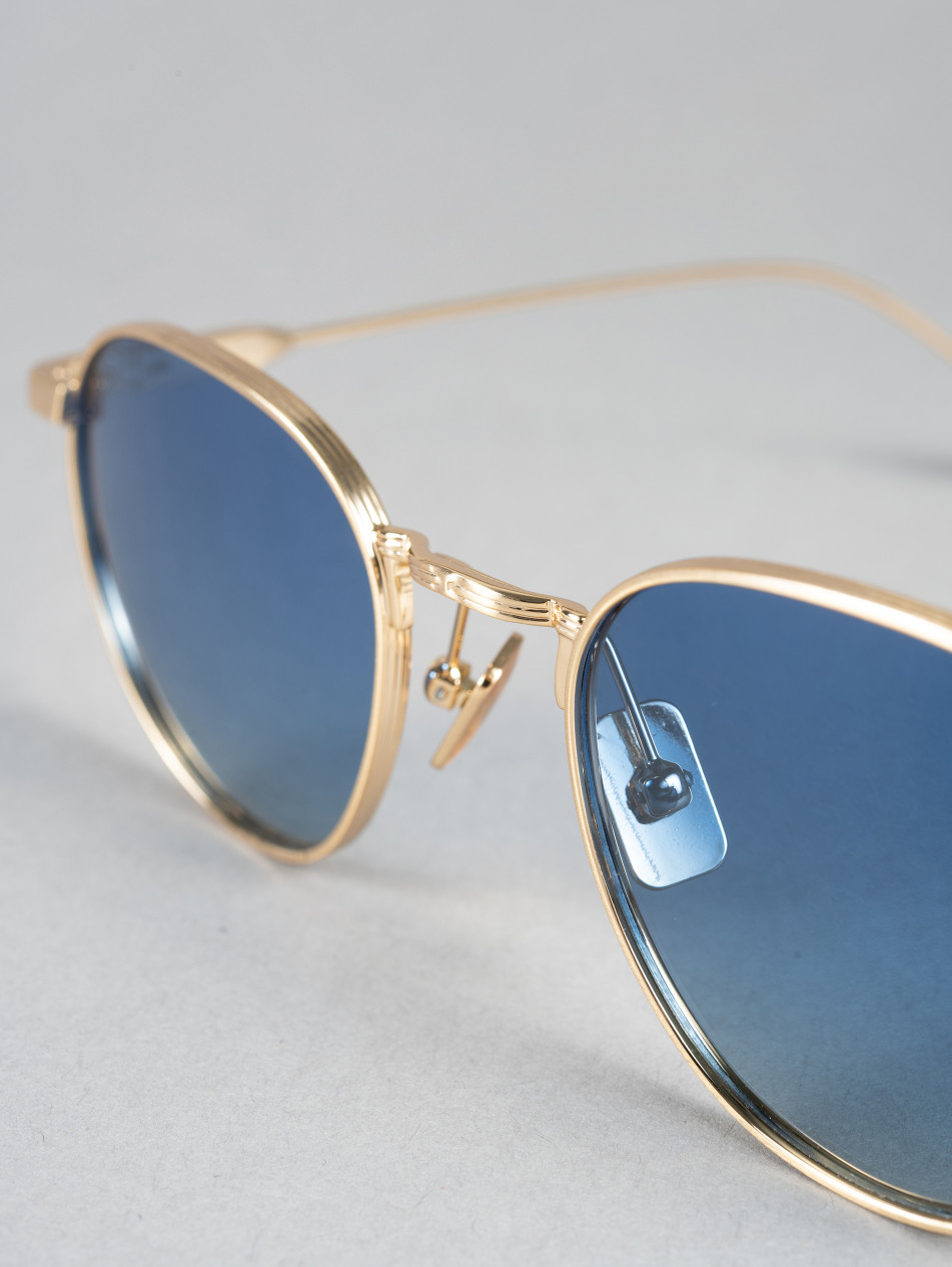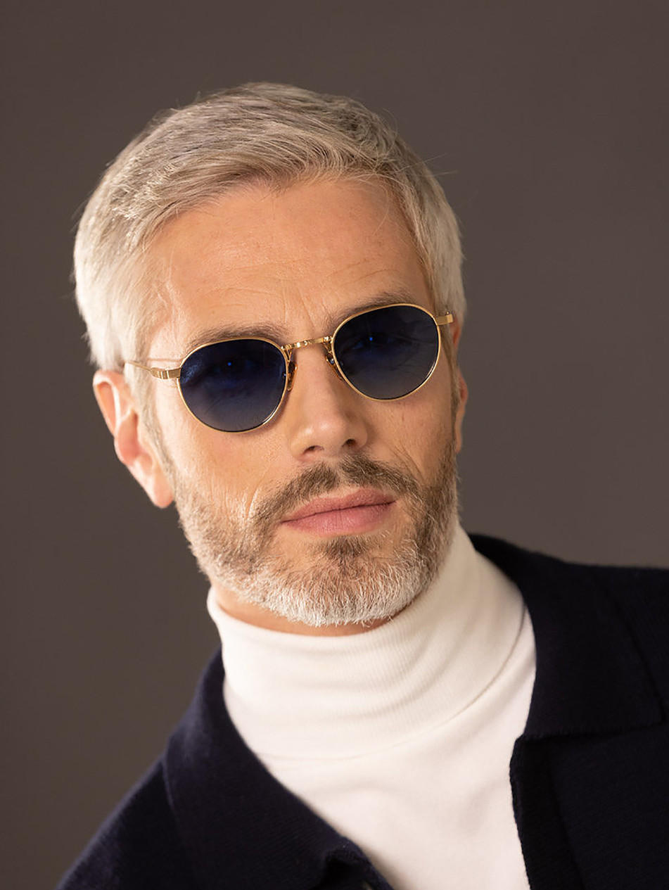 IRS47, "ORA" is a slim, lightweight frame with a retro-chic look, available in three versions: yellow gold, matte silver, and a model combining yellow gold, silver, and black edging on the front. Its rounded, flowing shape will flatter any face, offering a casual, vintage style suitable for any occasion. This frame is also unisex, suitable for all genders.