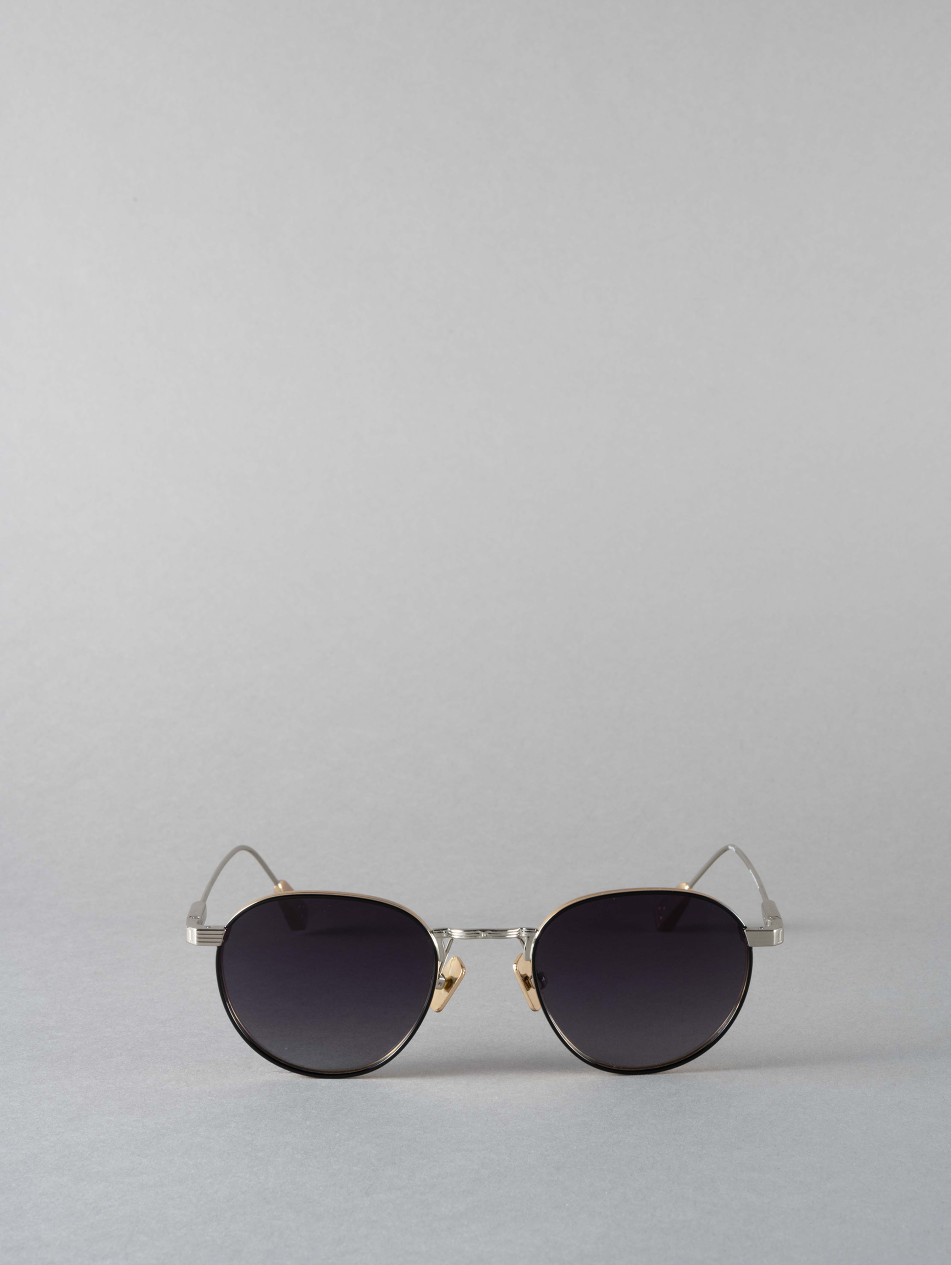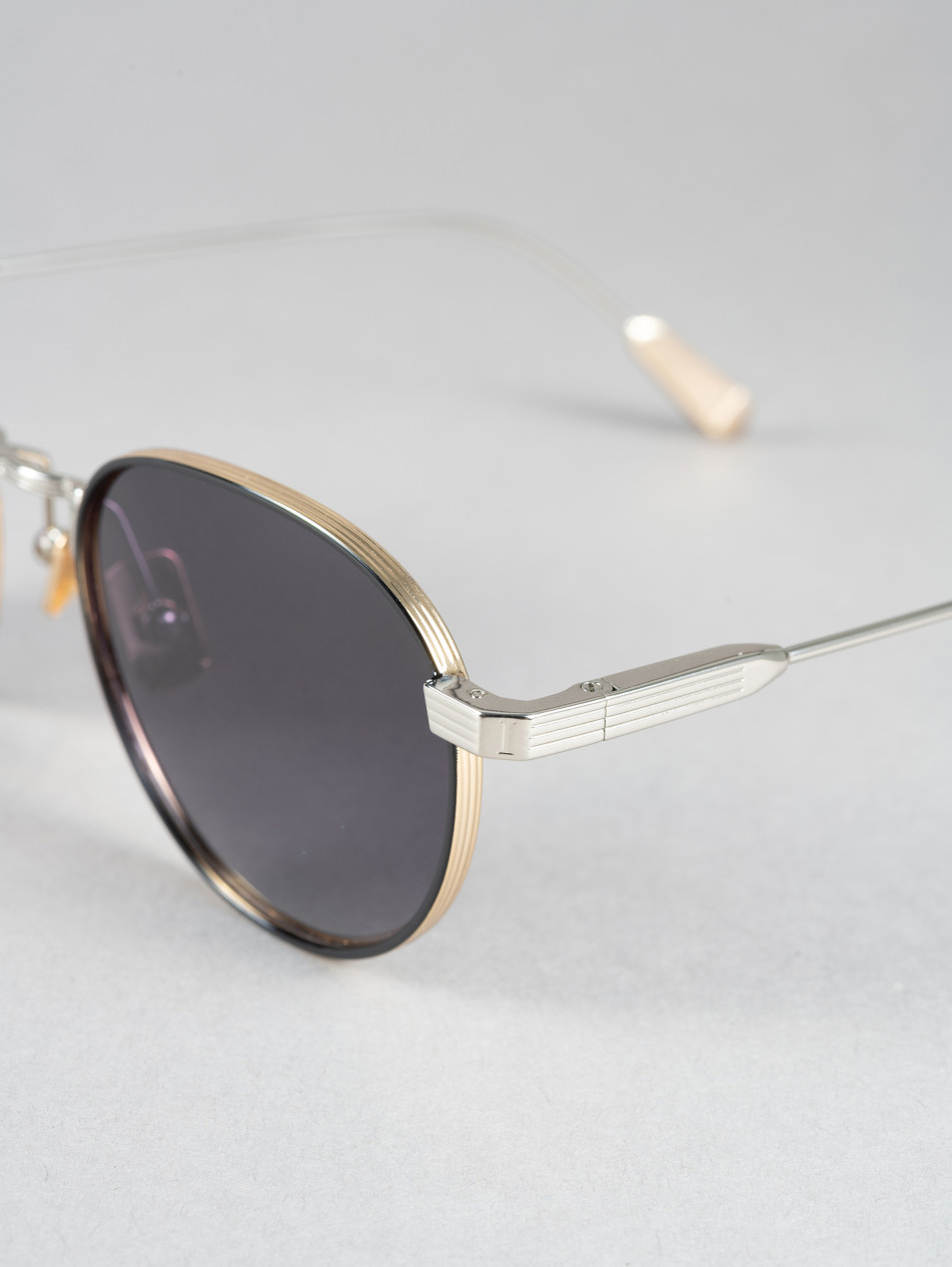 IRS47, "ORA" is a slim, lightweight frame with a retro-chic look, available in three versions: yellow gold, matte silver, and a model combining yellow gold, silver, and black edging on the front. Its rounded, flowing shape will flatter any face, offering a casual, vintage style suitable for any occasion. This frame is also unisex, suitable for all genders.