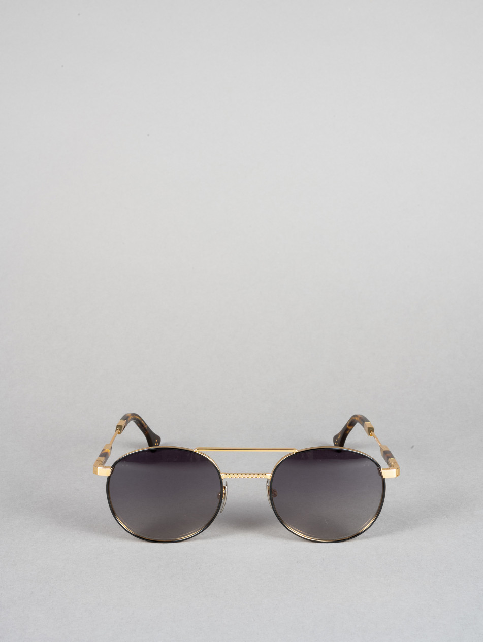 Le modèle IRS58 incarne un style contemporain distinctif. Avec sa monture ronde et son double pont marquant, cette paire est rehaussée par une touche de sophistication avec sa bande noire sur les branches. Disponible en argent, doré et noir.