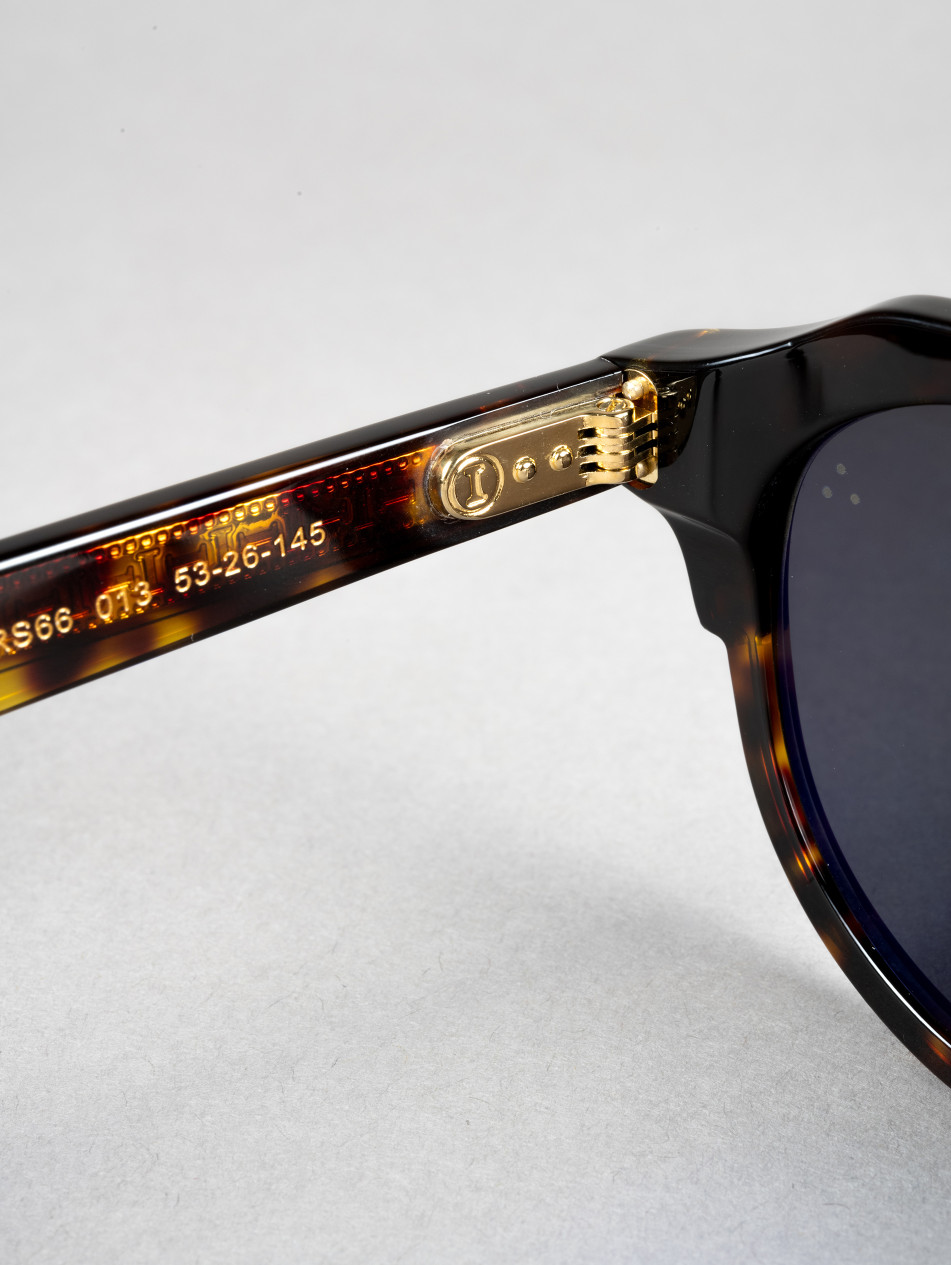 Le modèle IRS66 de la collection Ytro présente une monture de style Pantos avec face et branches en acétate. Son assemblage met en valeur la densité et les reflets de la matière. Disponible en Havane et Gris Cristal Brillant, cette paire de lunettes incarne l'élégance et l'audace