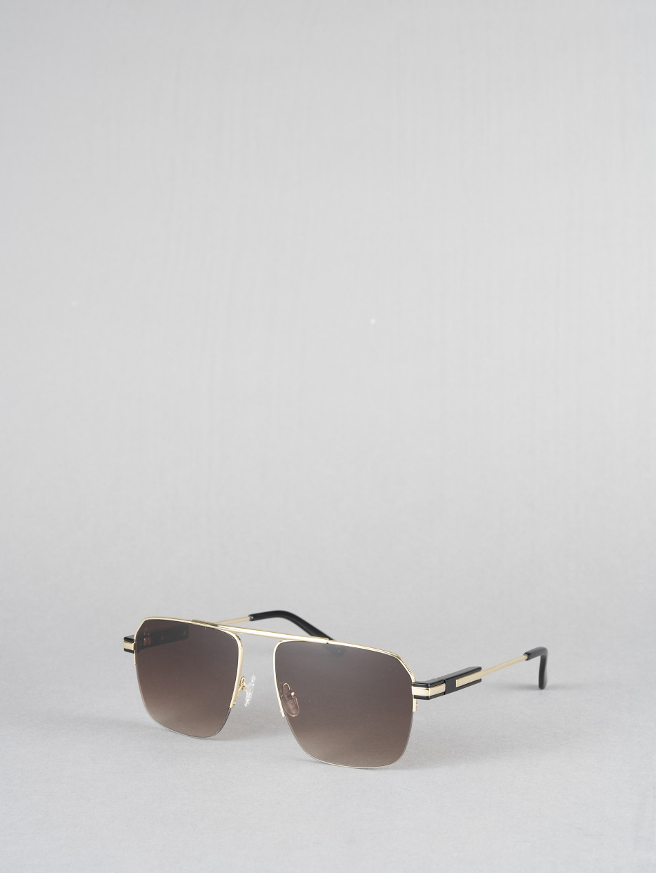 Le modèle "Marcus" de la collection Renaissance est une paire de lunettes de soleil élégante et audacieuse. Elle revisite le classique design aviateur avec une monture raffinée et des verres carrés. Leur structure fine et sophistiquée s’accompagne de branches ornées de détails, pour un style résolument moderne.