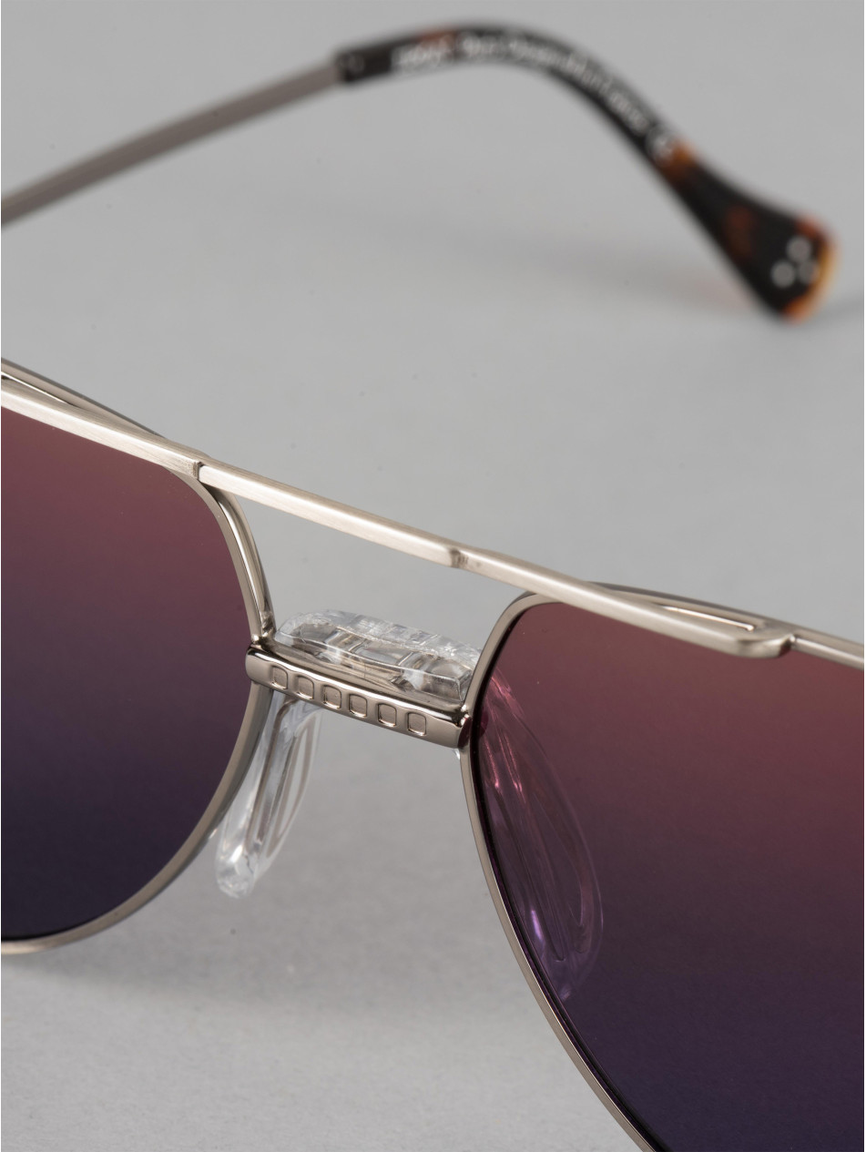 Notre modele "MONTANA", en édition limitée. Un style old school revisité et sublimé. En référence a Tony Montana dans Scarface cette monture solaireest un de nos best-sellers. Double pont revisité, verres anti-reflets, fines branches flex incrustées de notre logo IRON Paris effet 3D et manchons en écaille. Existe en différents coloris : plaqué or 24 carats, gris silver, pour une silhouette emblématique des années 80.