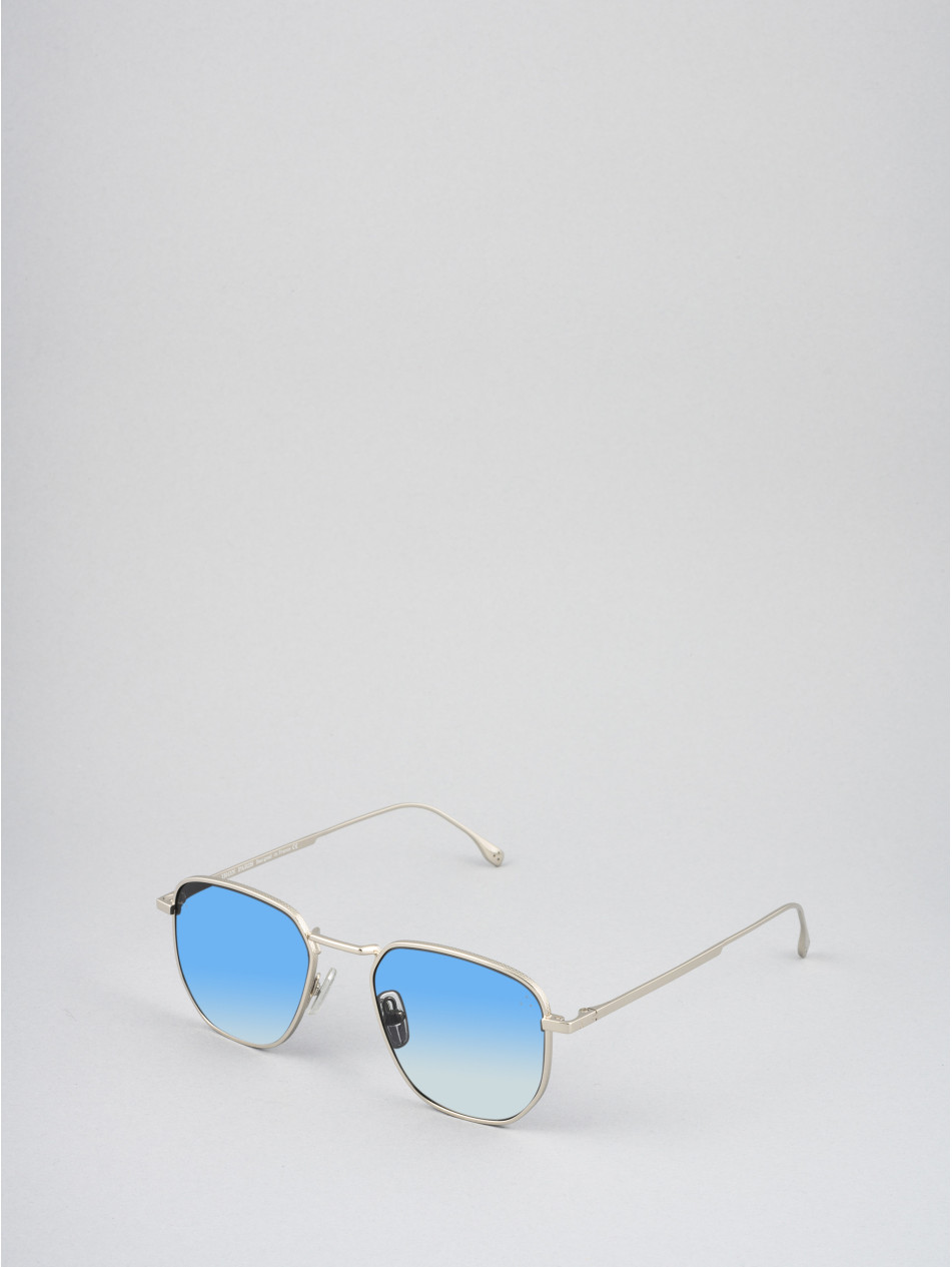 Notre basique intemporel, une solaire a la forme carrée et a l'esprit vintage. Une monture solaire minutieusement poinçonnée sur les contours des verres, des inserts de I gravés sur le côté des branches, pour un style sobre et toujours raffiné. Verres dégradés, plaquettes discretes en silicone, branches légeres, ce modele décliné en or, or rose et argent réveillera une finesse épurée qui vous collera a la peau.