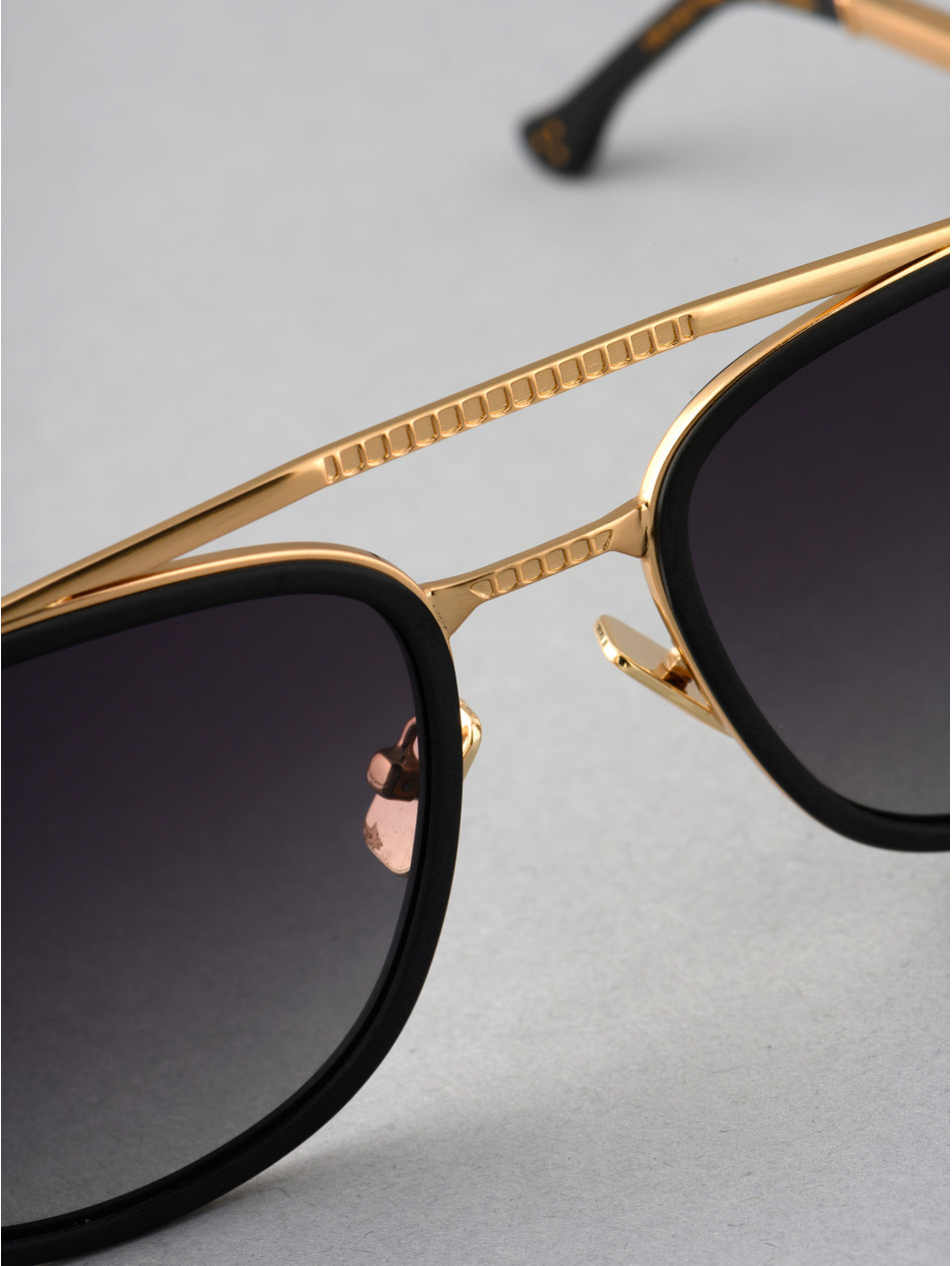 Notre édition limitée BRIDGE, l'iconique. Un cerclage en acétate noir, noir mat ou écaille foncé pour une inspiration vintage et authentique. Un double pont minutieusement poinçonné révélant l'insert métal en plaqué or jaune, or rose 24 carats ou argenté, bague de finition et manchon assortis, la subtilité des finitions de ce modele apportent caractere et style a cet intemporel. Des verres dégradés anti-reflets, des plaquettes "effet métal" et des branches Flex en métal brossées élégamment siglées IRON Paris pour un confort optimum.
