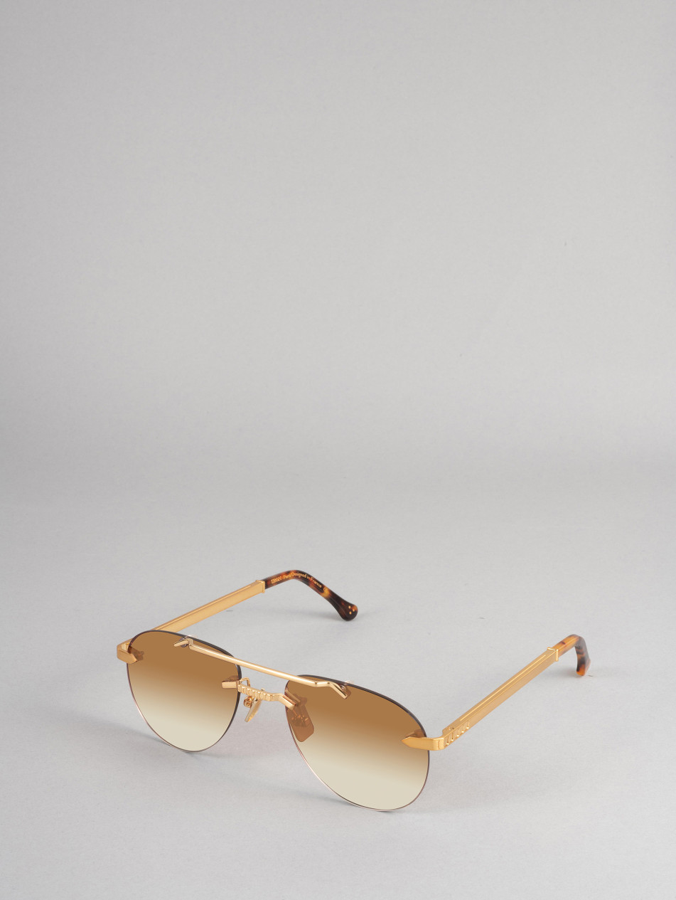 Notre CUBOID en édition limitée, pour un style rétro revisité. Une solaireronde percée. Une bague de finition et un manchon assortis apportent subtilité et finesse aux finitions de ce modele se déclinant en plaqué or 24 carats et argenté. Des verres dégradés anti-reflets, des plaquettes "effet métal" et des branches Flex en métal brossé élégamment siglées IRON Paris pour ne jamais laisser le confort de côté.