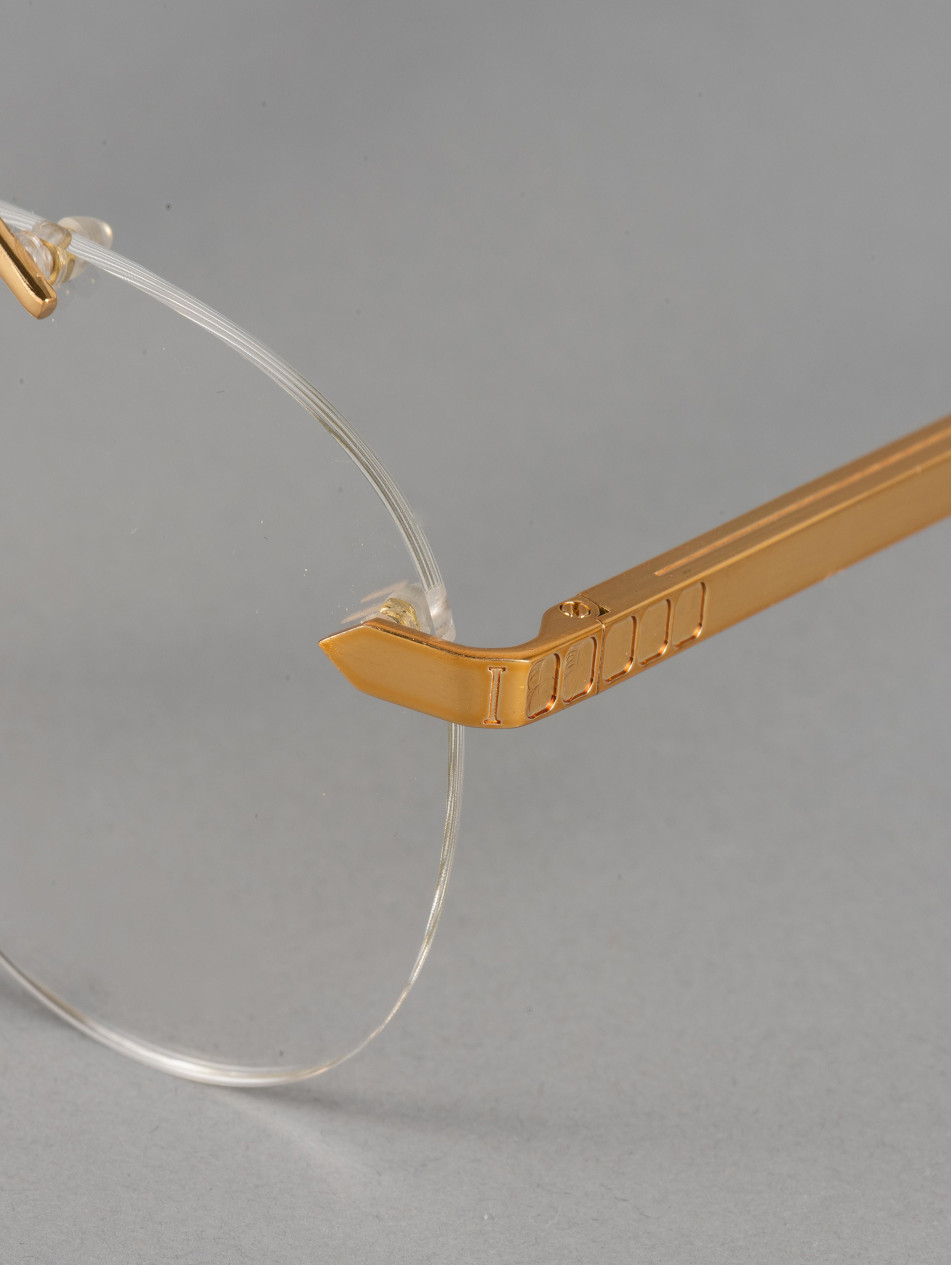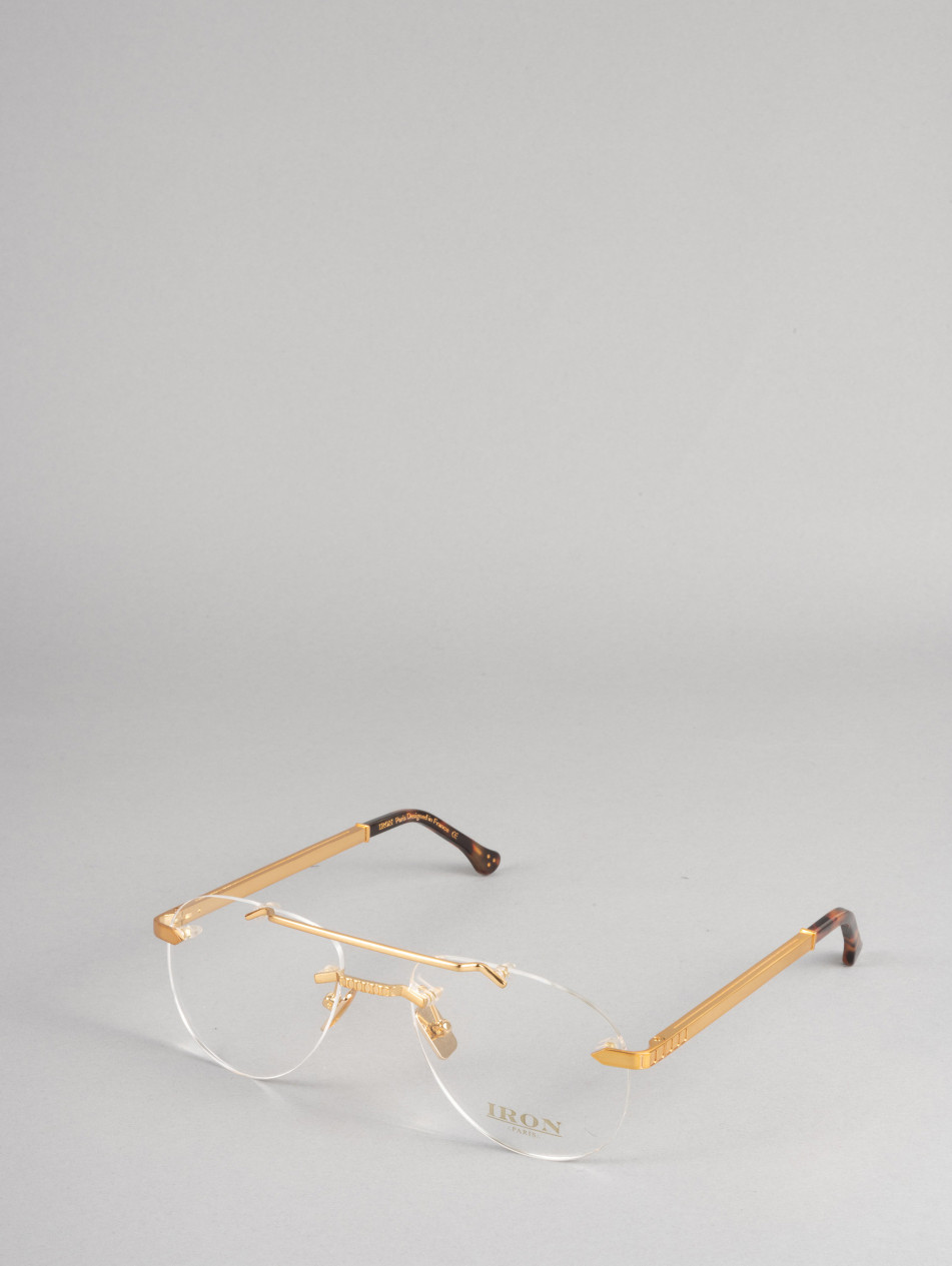 Notre CUBOID en édition limitée, pour un style rétro revisité. Une monture optiqueronde percée. Une bague de finition et un manchon assortis apportent subtilité et finesse aux finitions de ce modele se déclinant en plaqué or 24 carats et argenté. Des verres dégradés anti-reflets, des plaquettes "effet métal" et des branches Flex en métal brossé élégamment siglées IRON Paris pour ne jamais laisser le confort de côté.
