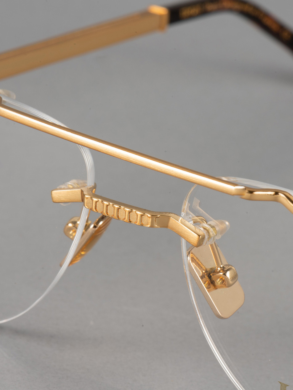 Notre CUBOID en édition limitée, pour un style rétro revisité. Une monture optiqueronde percée. Une bague de finition et un manchon assortis apportent subtilité et finesse aux finitions de ce modele se déclinant en plaqué or 24 carats et argenté. Des verres dégradés anti-reflets, des plaquettes "effet métal" et des branches Flex en métal brossé élégamment siglées IRON Paris pour ne jamais laisser le confort de côté.