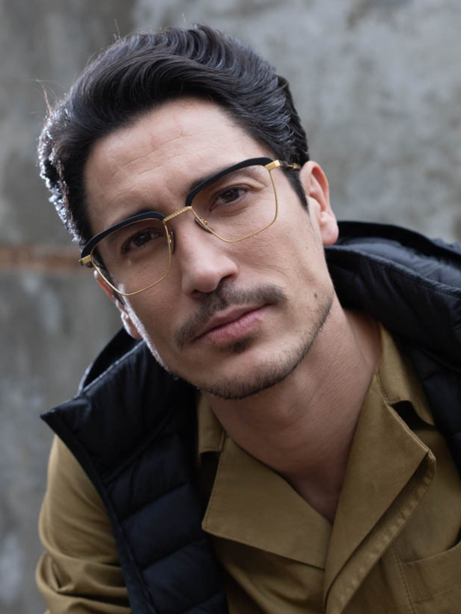 Le modèle IRO56 propose une monture optique rectangulaire en acétate noir avec des accents métalliques dorés et argentés, apportant une touche contemporaine inspirée des formes géométriques des années 80.