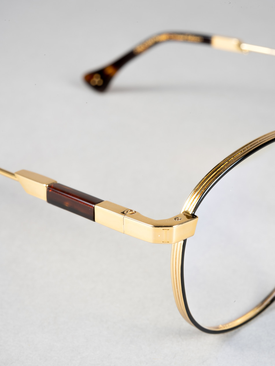 Le modèle IRO58 incarne un style contemporain distinctif. Avec sa monture ronde et son double pont marquant, cette paire est rehaussée par une touche de sophistication avec sa bande noire sur les branches. Disponible en argent, doré et noir.